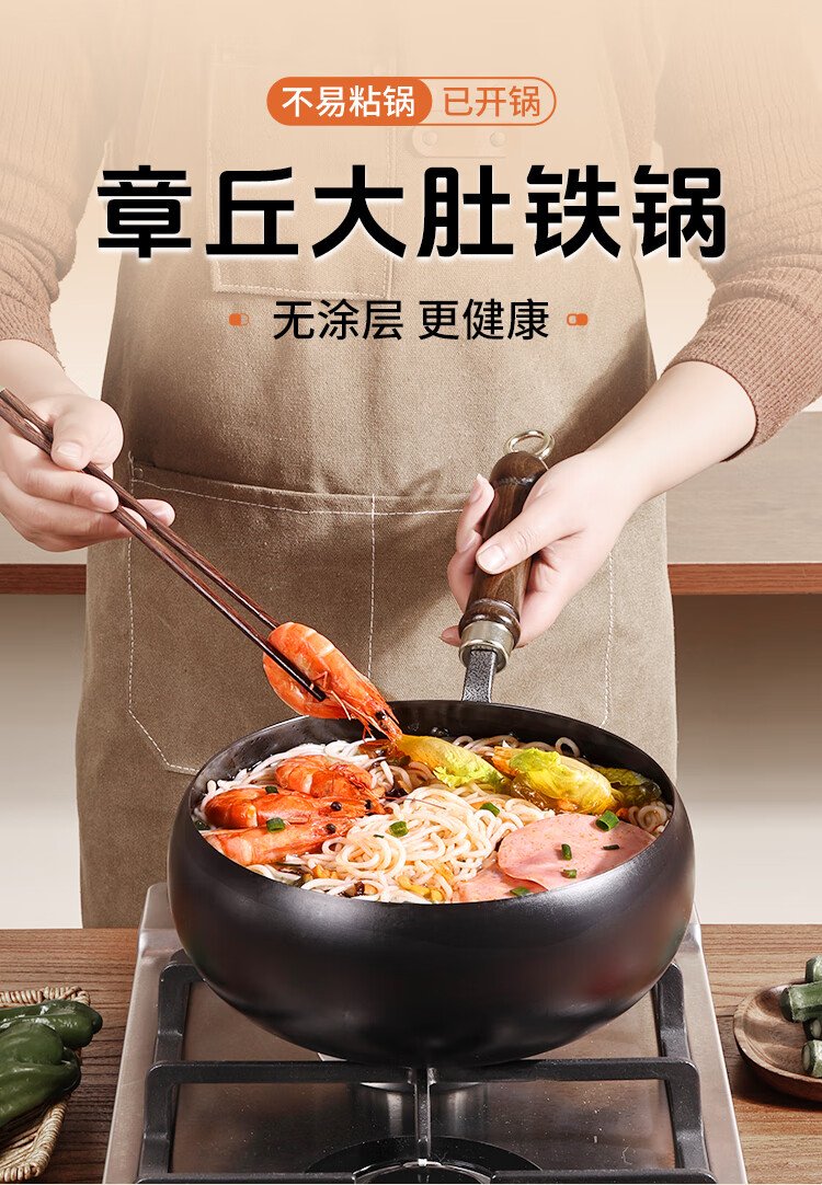Zhang Sanfeng big belly pot Zhangqiu wok iron pot uncoated household wok flat bottom stew pot old-fashioned pot 24cm