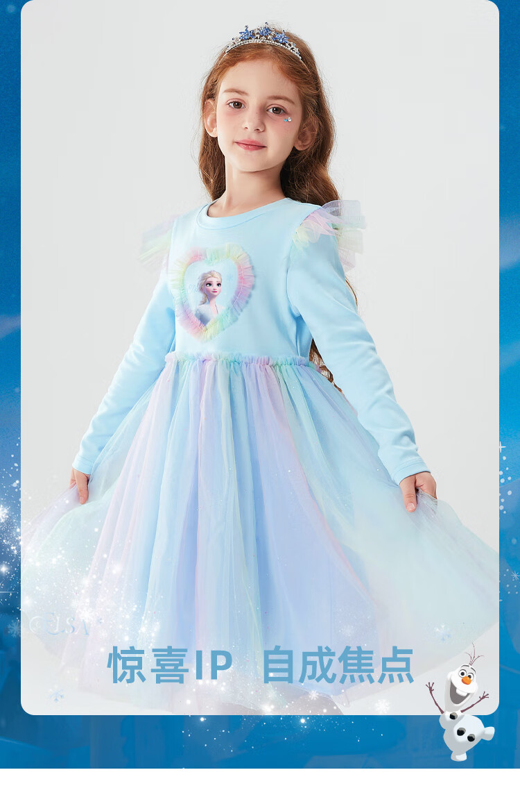 Disney Elsa Princess Skirt Women's 2025 New Girls' Dress Spring and Autumn Children's Princess Skirt LX81227 Blue 120