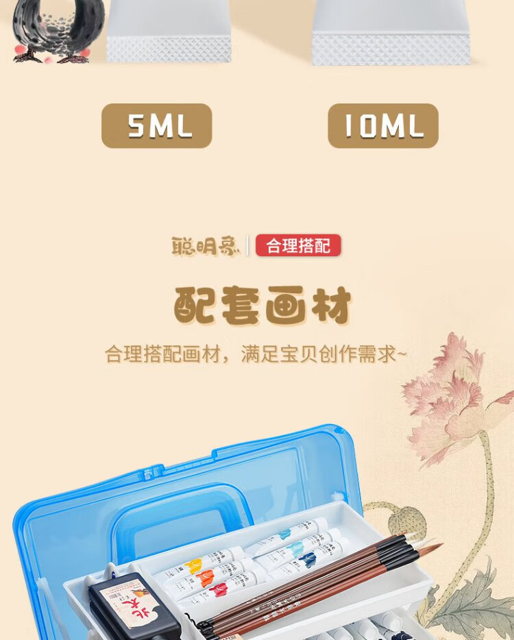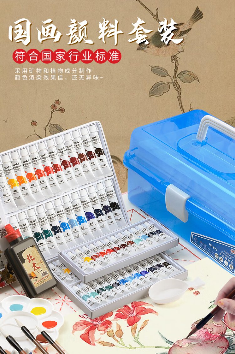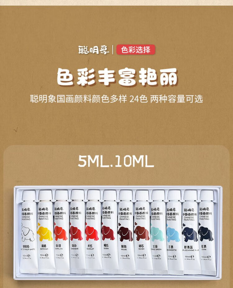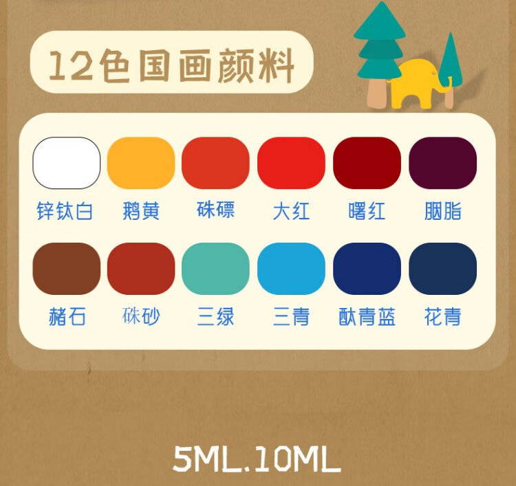 Smart Elephant Chinese Painting Pigments Beginner Set 12 Colors 5ml Children Elementary School Junior High School Entry Tools Chinese Painting Meticulous Brushwork Landscape Painting Ink Painting Painting With Tool Box-12 Piece Set