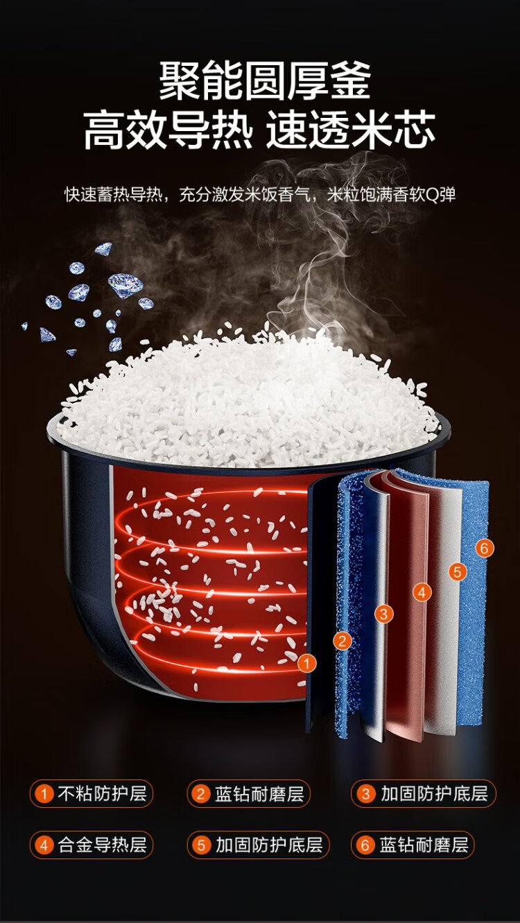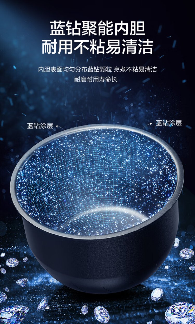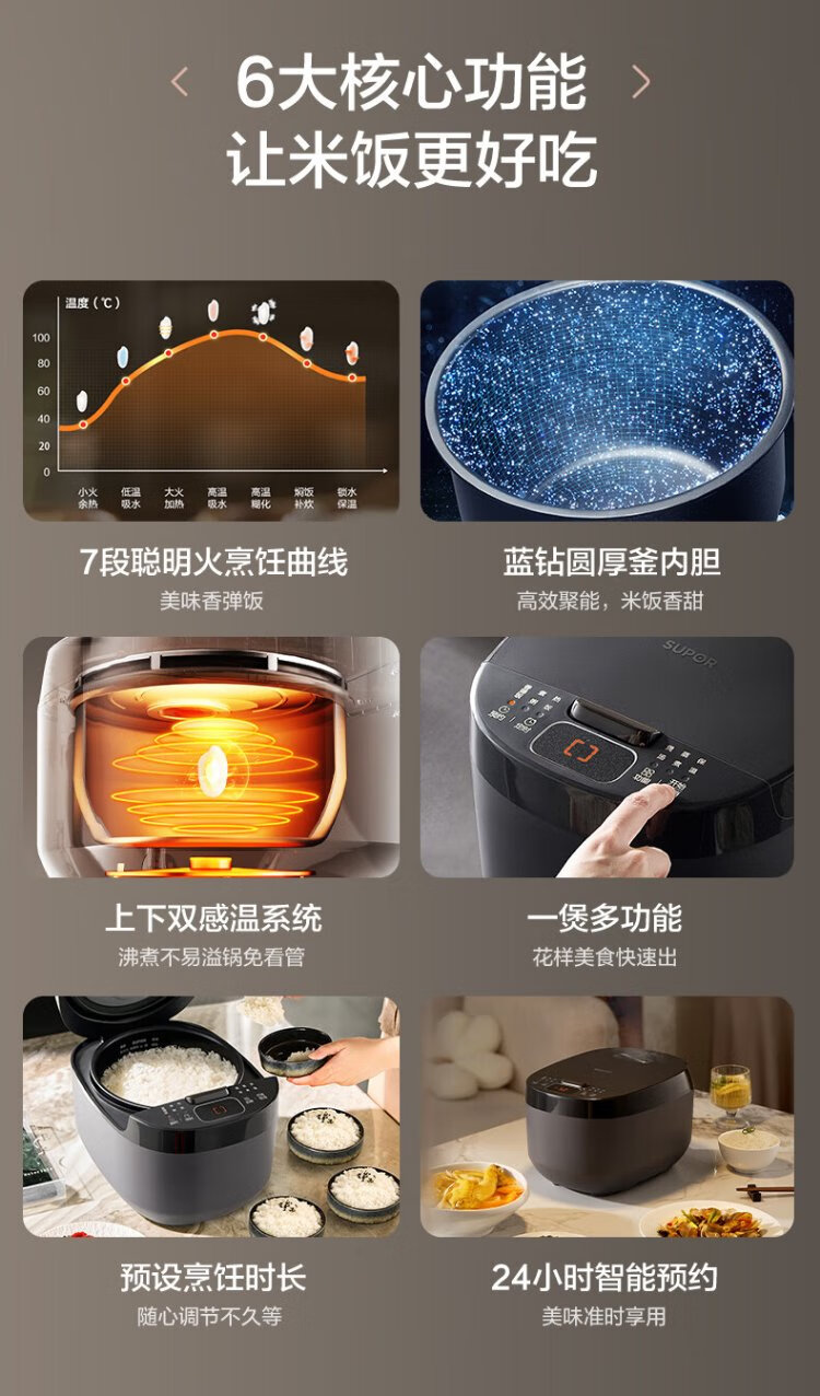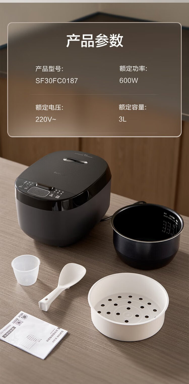 SUPOR small rice cooker for 2-3 people 3 liters blue diamond non-stick inner pot household electric cooker for cooking rice and porridge smart reservation multi-function one pot multi-purpose small micro-pressure rice cooker 30FC0187