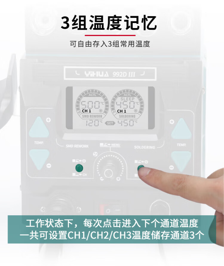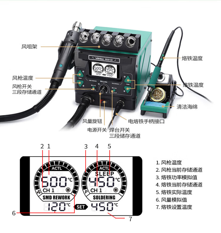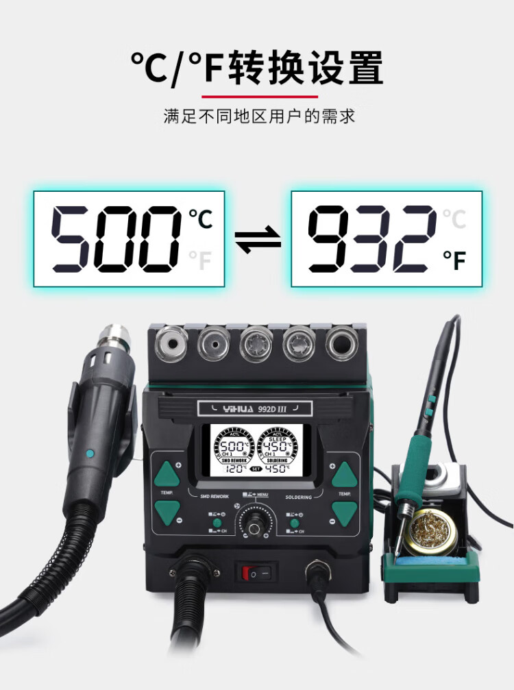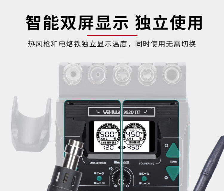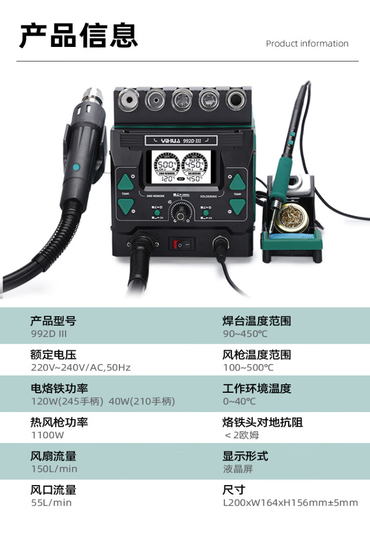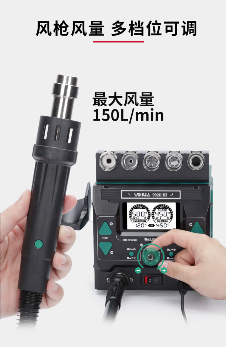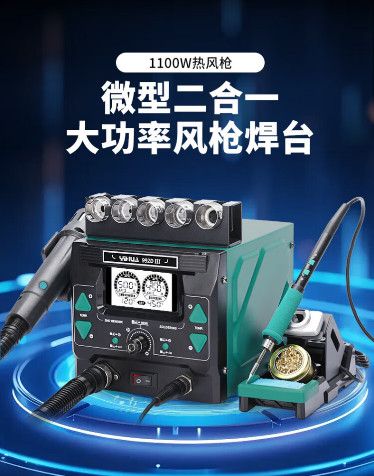 YIHUA Yihua 992D-III estación de soldadura de pistola de aire caliente de alta potencia de grado industrial 1100W soldador eléctrico de soldadura de precisión dos en uno