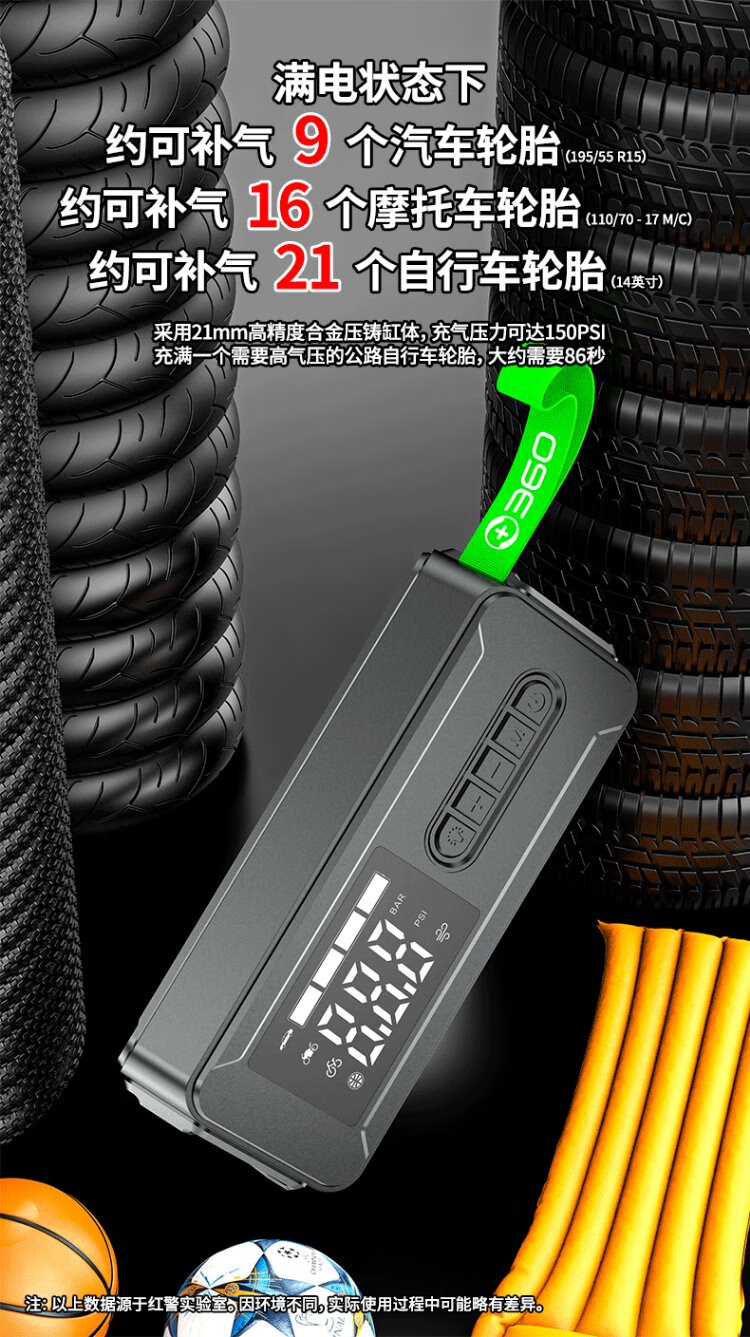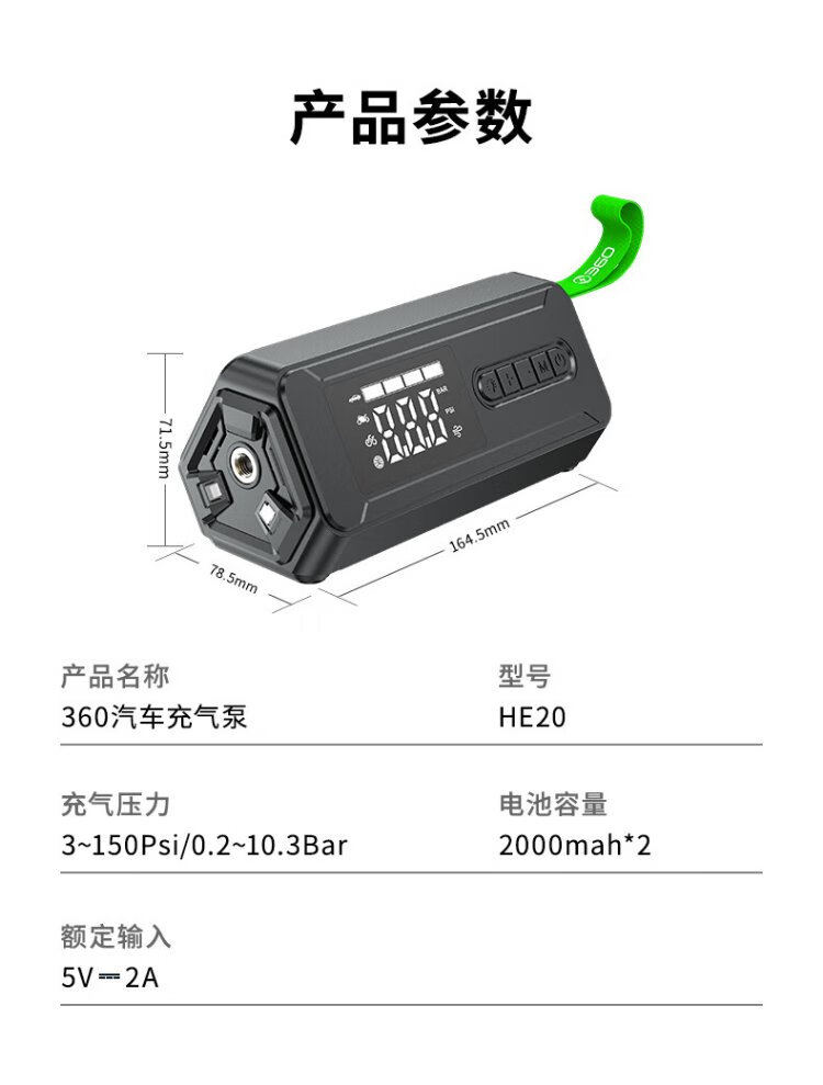 360 car air pump HE20 wireless portable car motorcycle electric bicycle tire pump intelligent digital display test