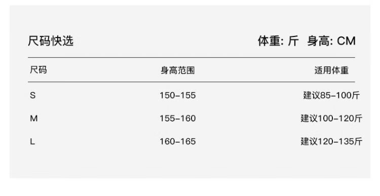 China (cm) 160-165/84-86 165-170 / 88-90 167-172 / 92-96 168-173 / 98-102 170-176 / 106-110
