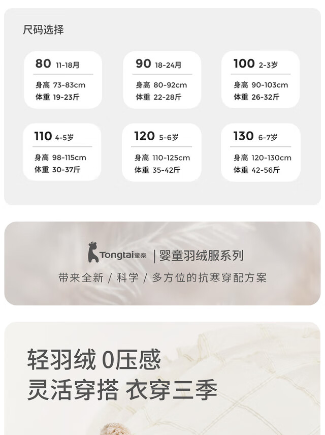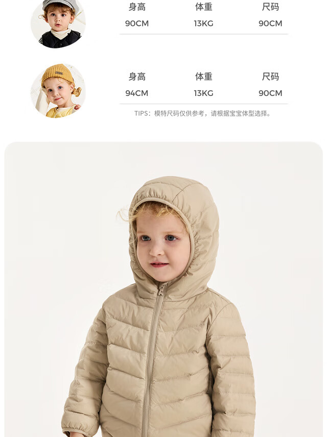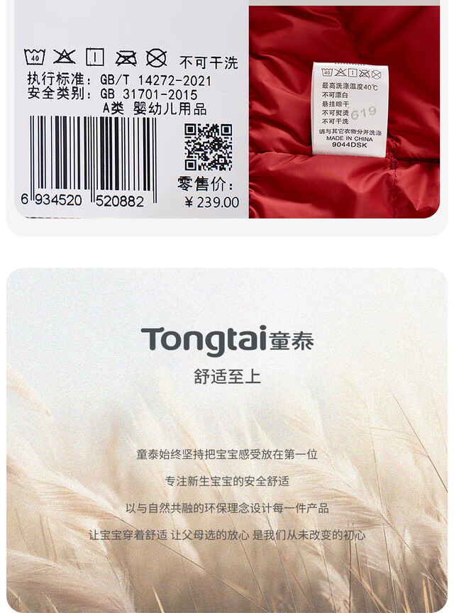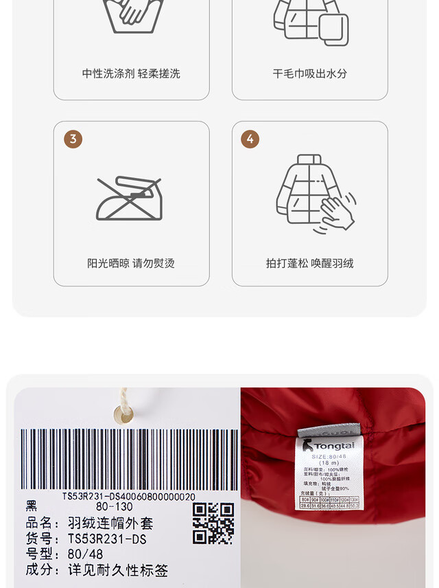 Tongtai (TONGTAI) baby down jacket winter baby clothes going out hooded duck down jacket children's three-proof top red 90cm