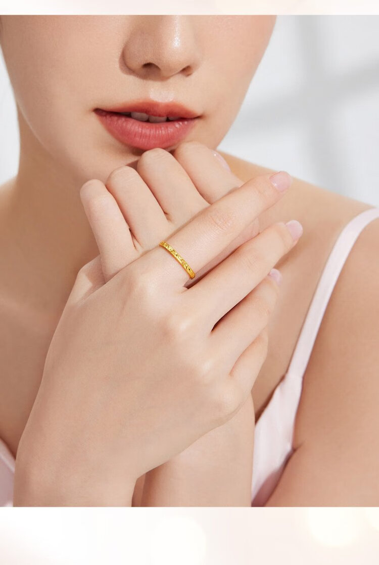 Lukfook Jewelry Gold Ring Broken Ice Solid Gold Ring Price No. 11 - Approximately 2.13 grams