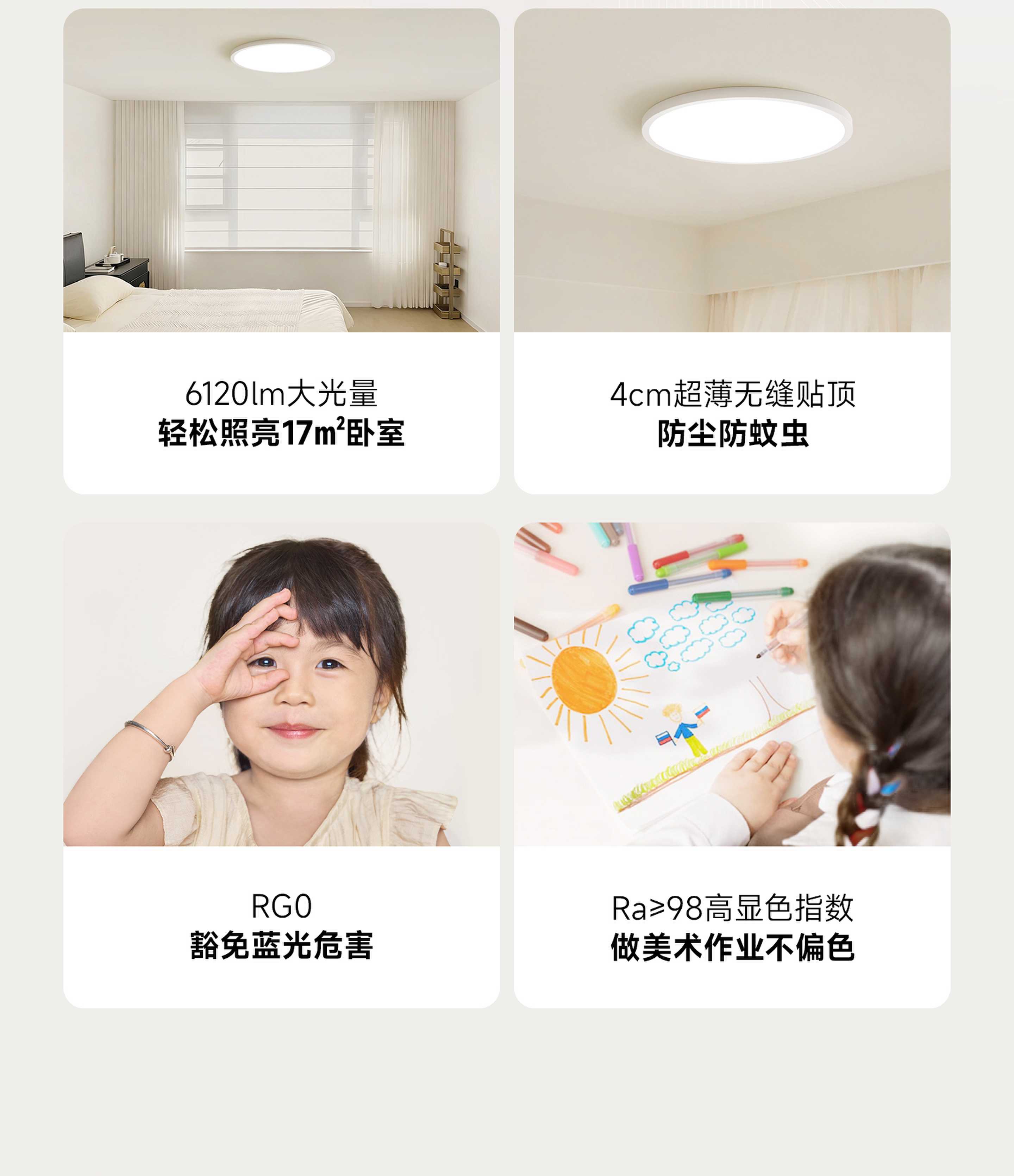 Jiandun Eye-Protective Bedroom Ceiling Lamp Full Spectrum Ultra-Thin Seamless Simple 4th Generation Youth Edition Lamp Package Installation