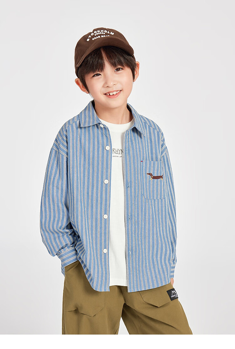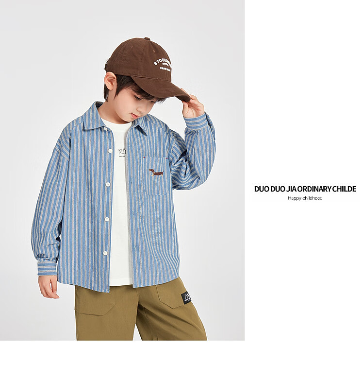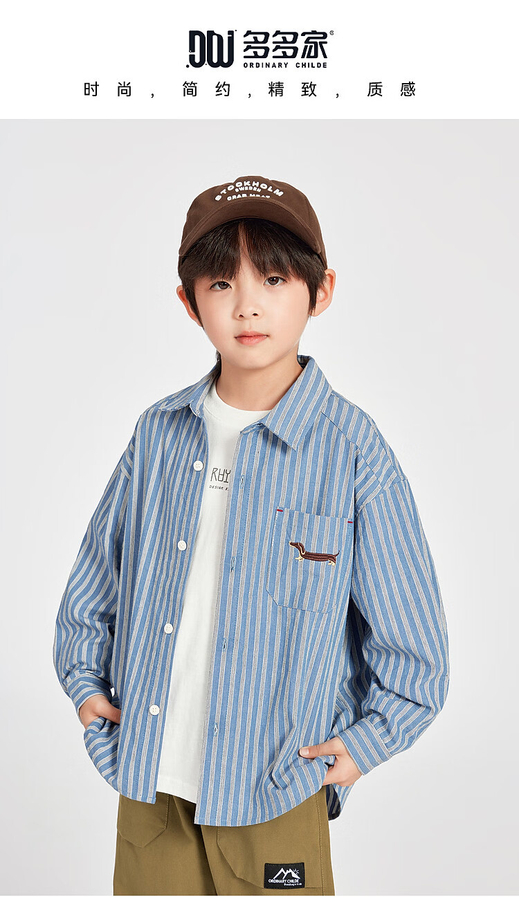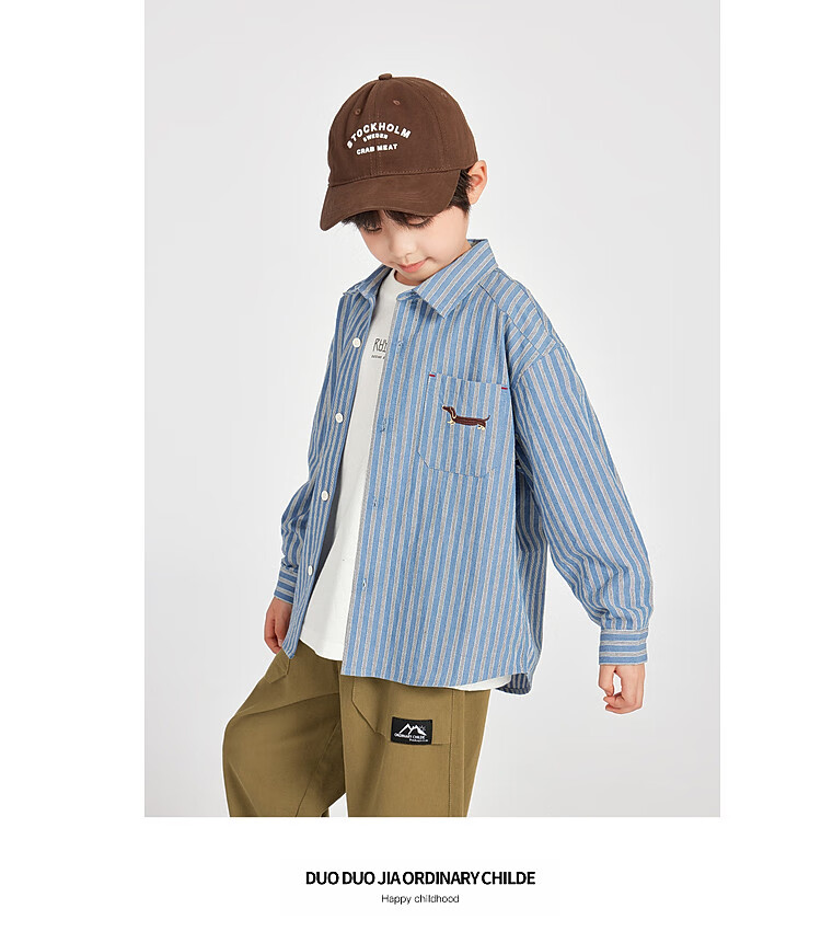 Duojia Dachshund Puppy Boys Casual Shirt 2025 Autumn New Striped Shirt Children's Fashion Handsome Thin Jacket
