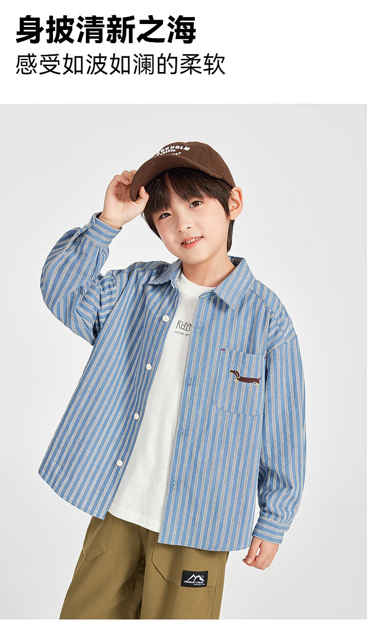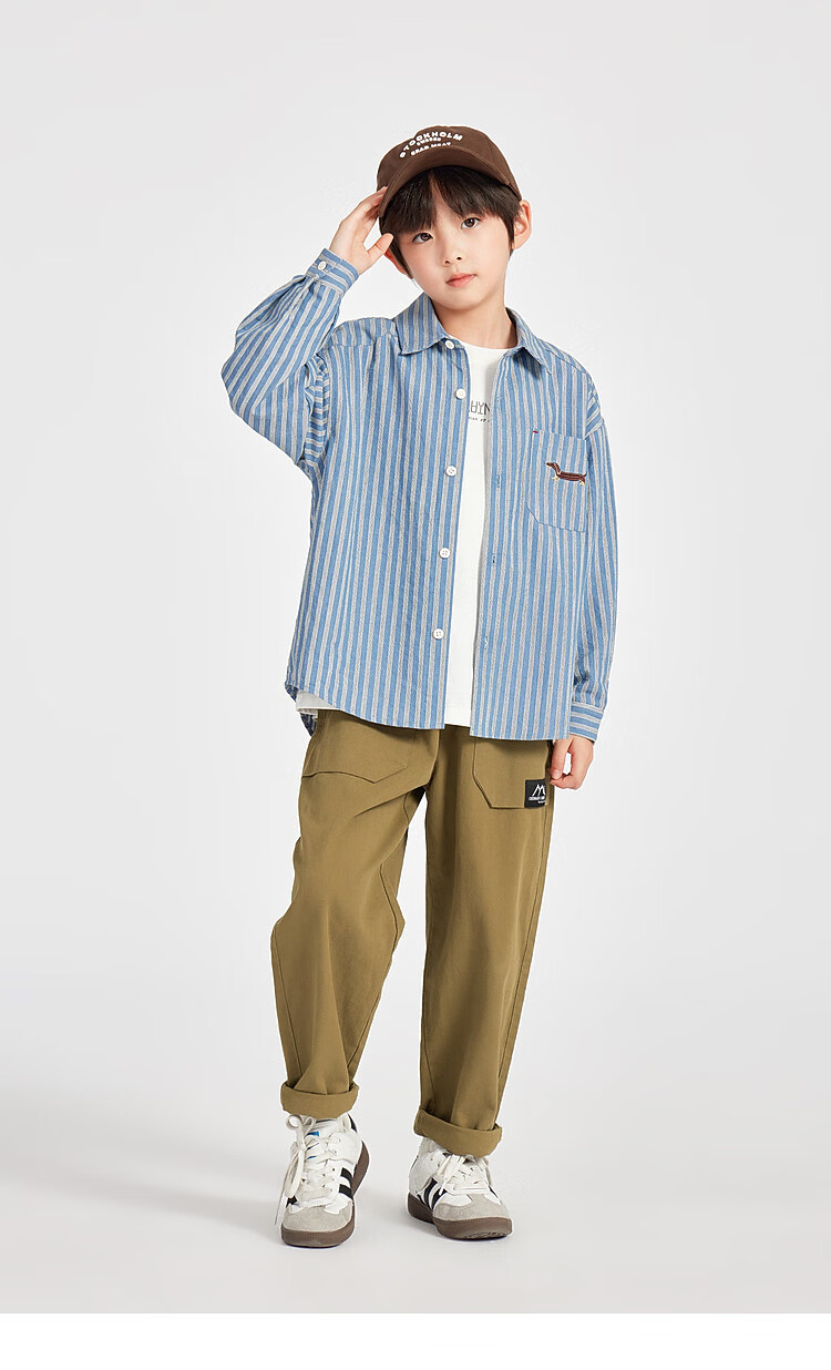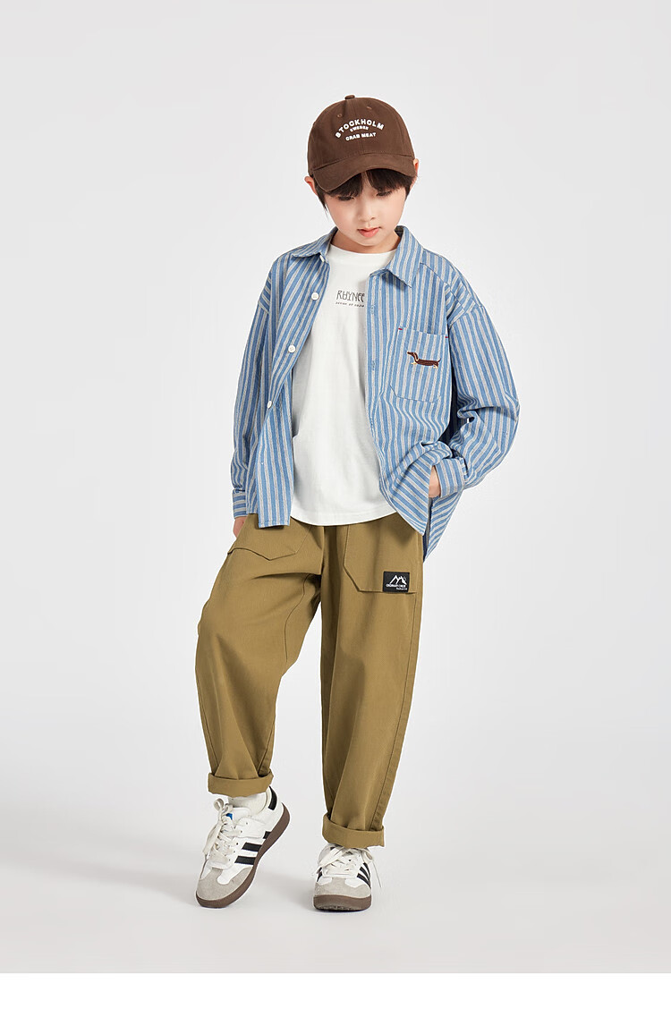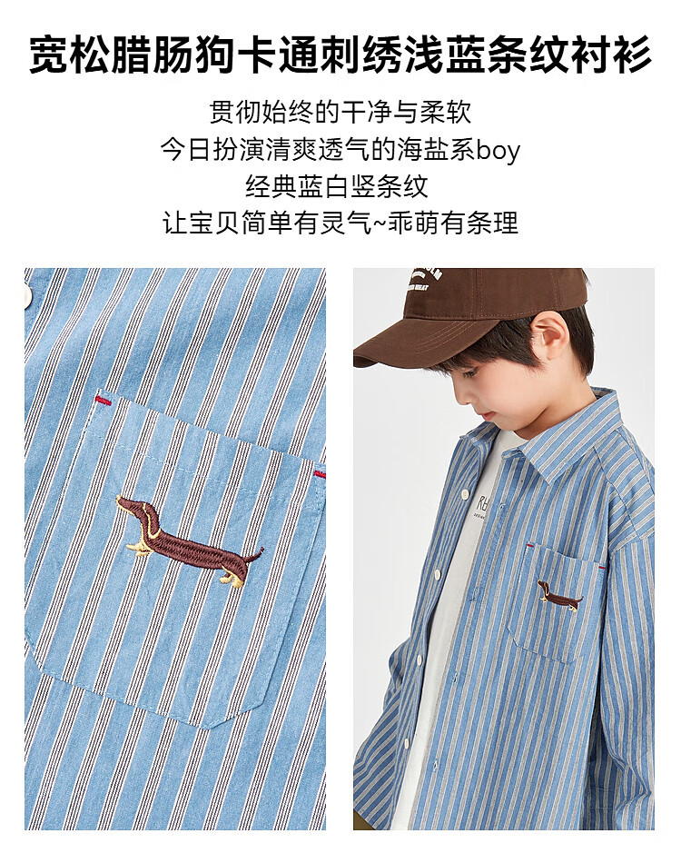 Duojia Dachshund Puppy Boys Casual Shirt 2025 Autumn New Striped Shirt Children's Fashion Handsome Thin Jacket