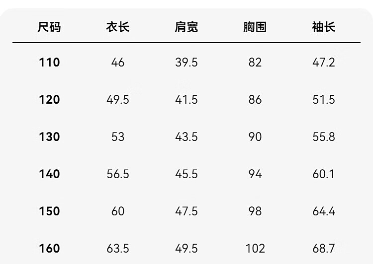 China (cm) 160-165/84-86 165-170 / 88-90 167-172 / 92-96 168-173 / 98-102 170-176 / 106-110
