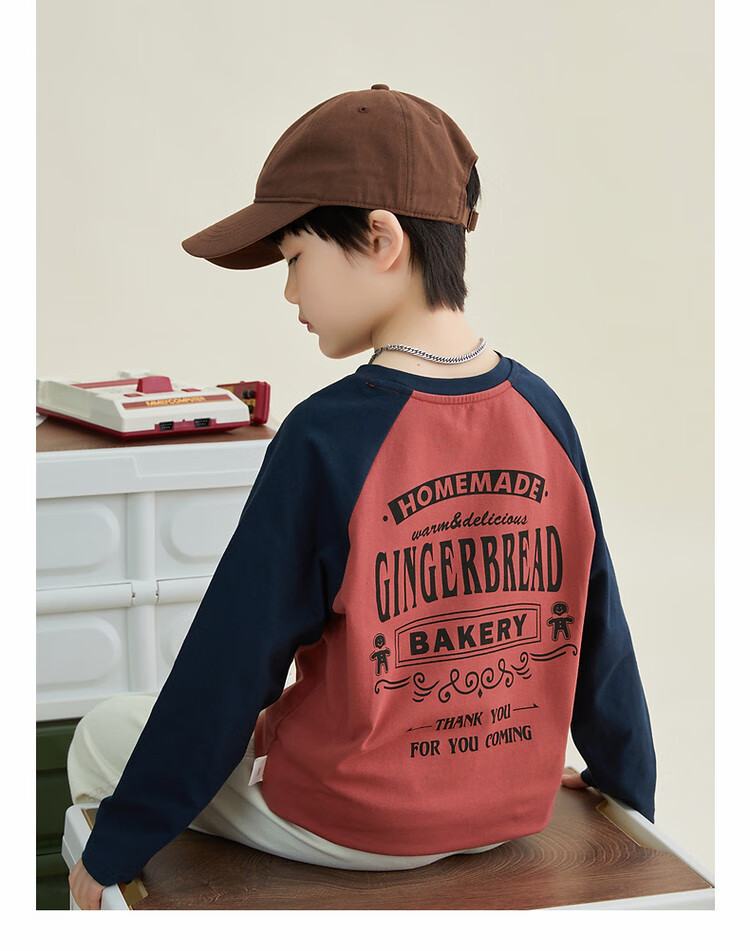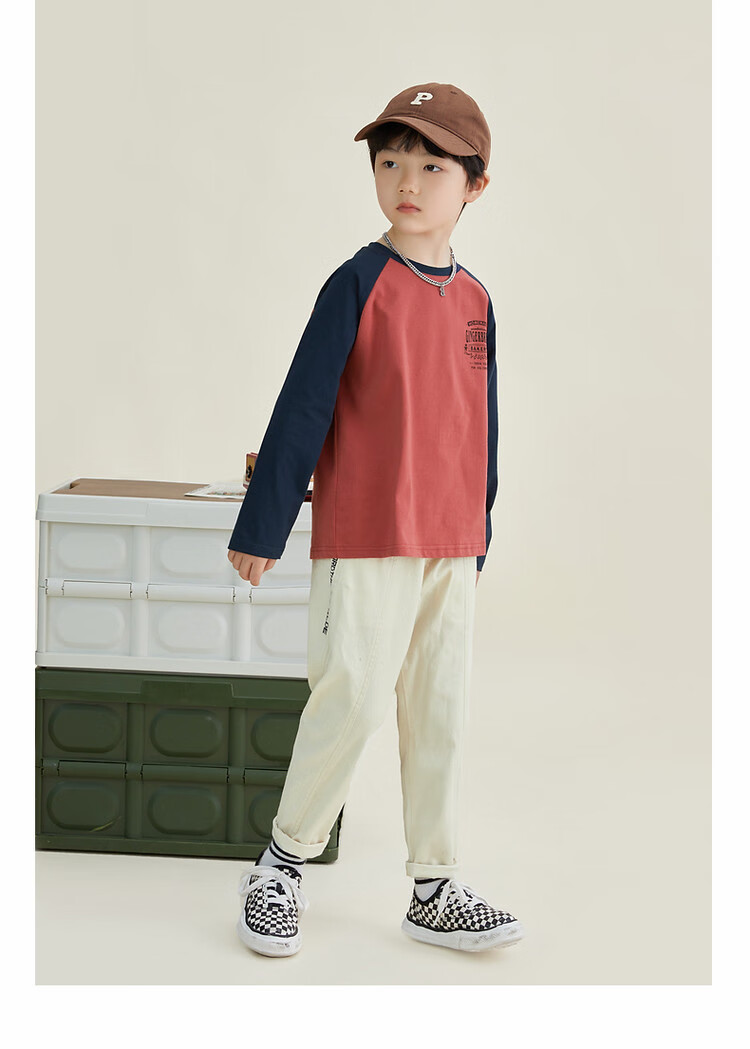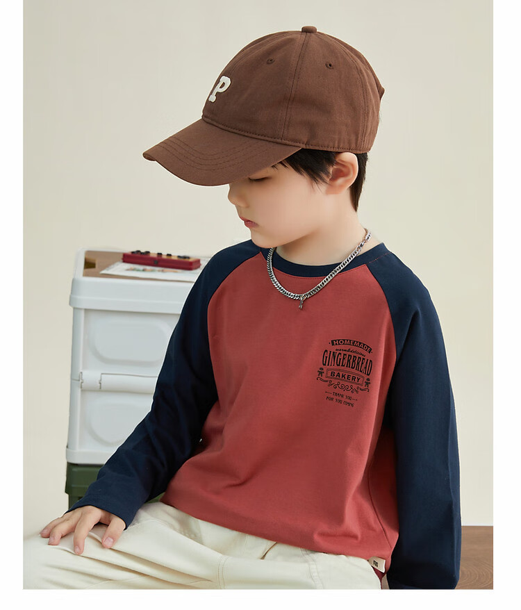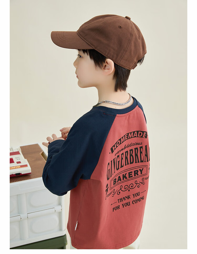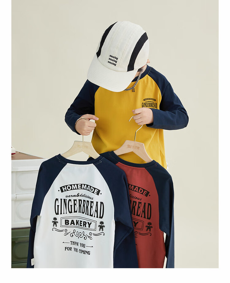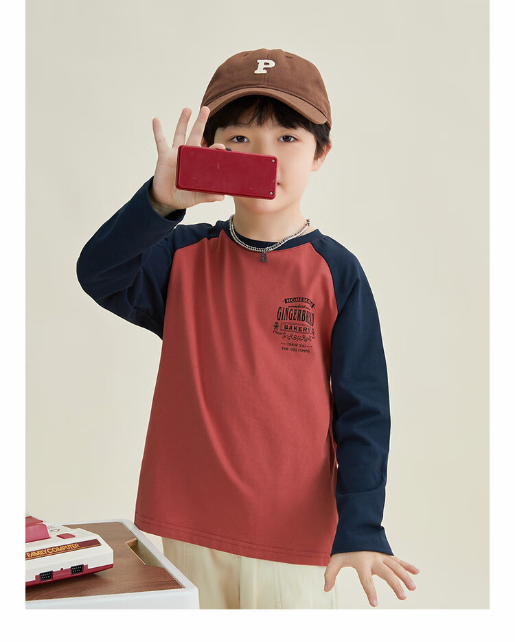 Duojia Children's Clothing 2026 Spring and Autumn Trendy Men's European and American Street Style Raglan Sleeve Printed Children's T-shirt Medium and Large Children's Cotton Long Sleeves