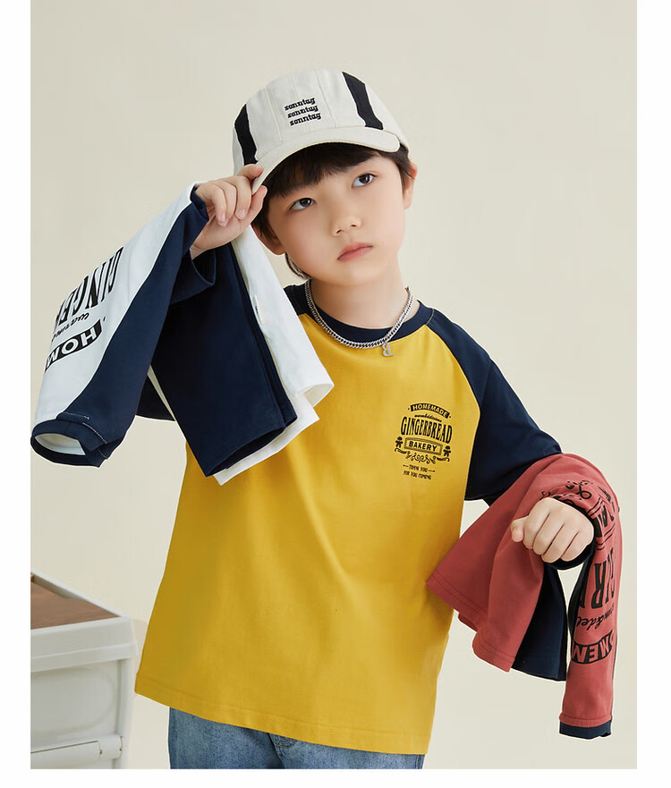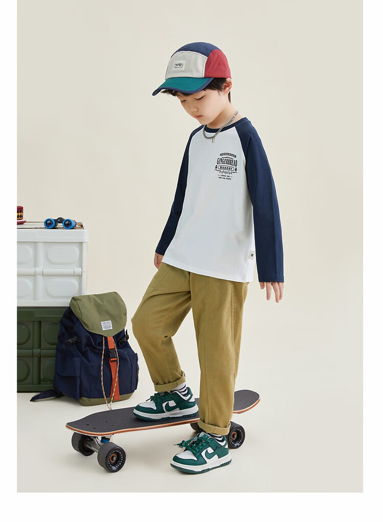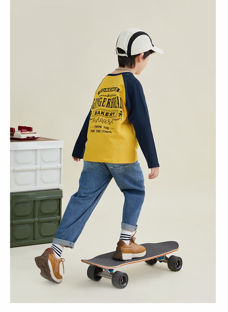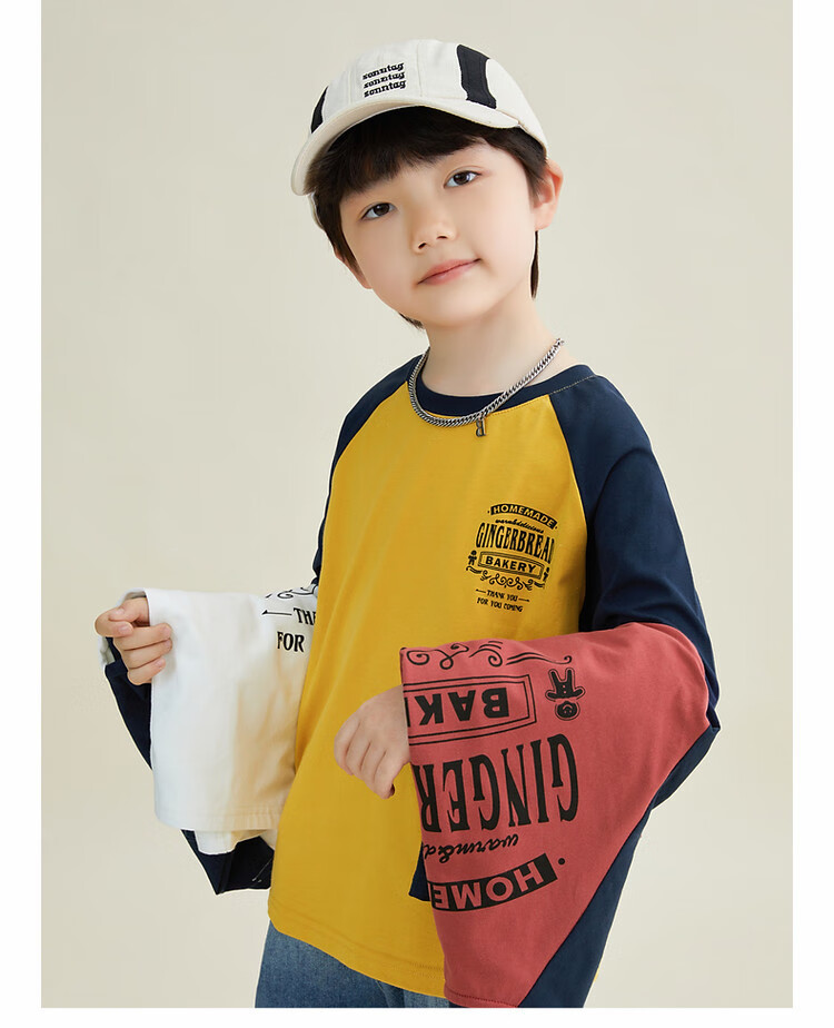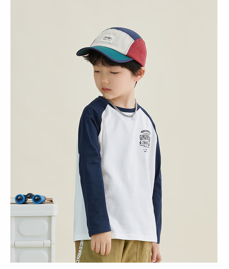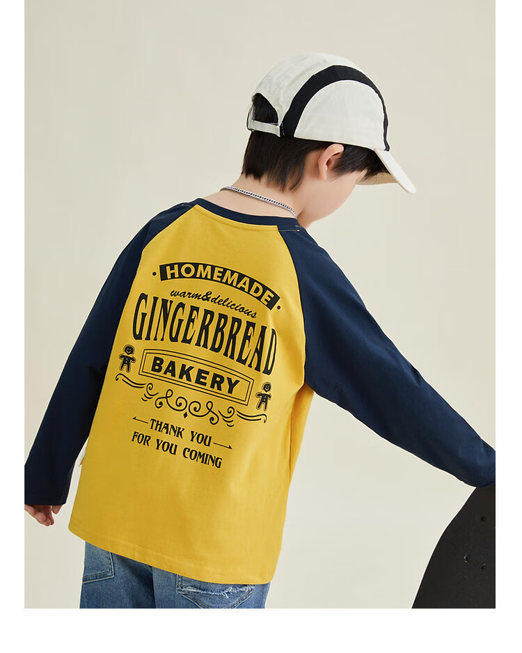 Duojia Children's Clothing 2026 Spring and Autumn Trendy Men's European and American Street Style Raglan Sleeve Printed Children's T-shirt Medium and Large Children's Cotton Long Sleeves