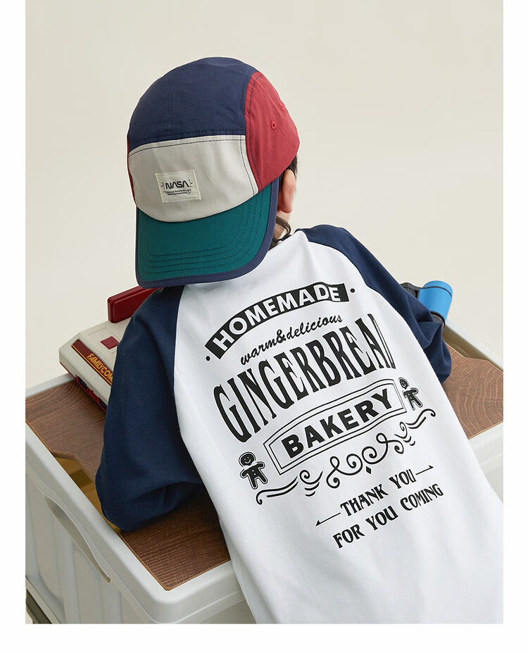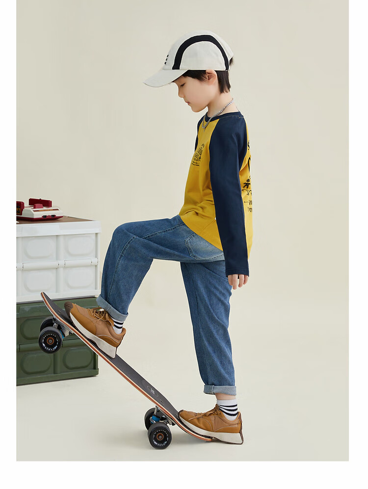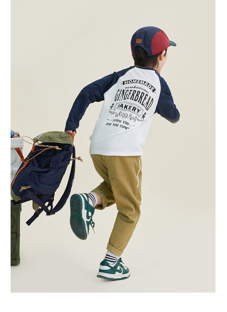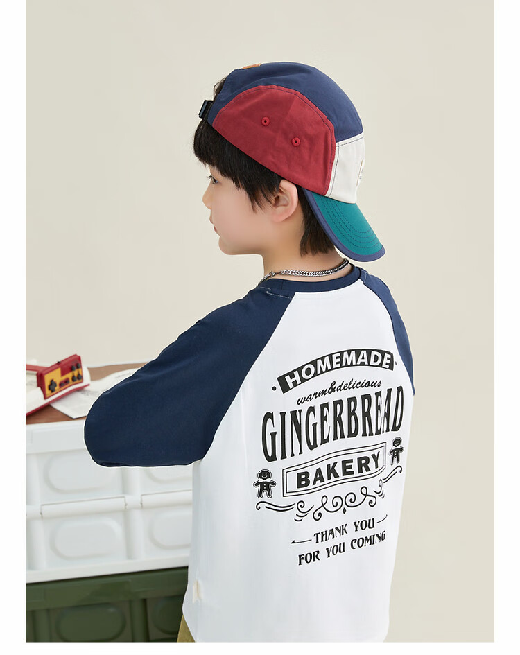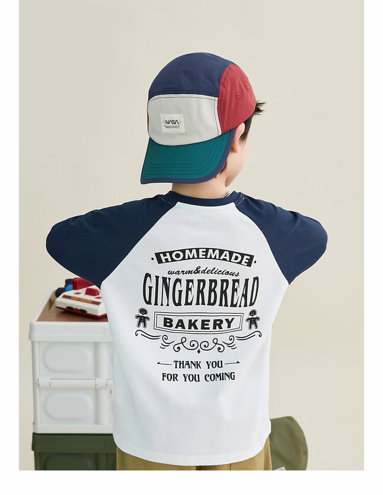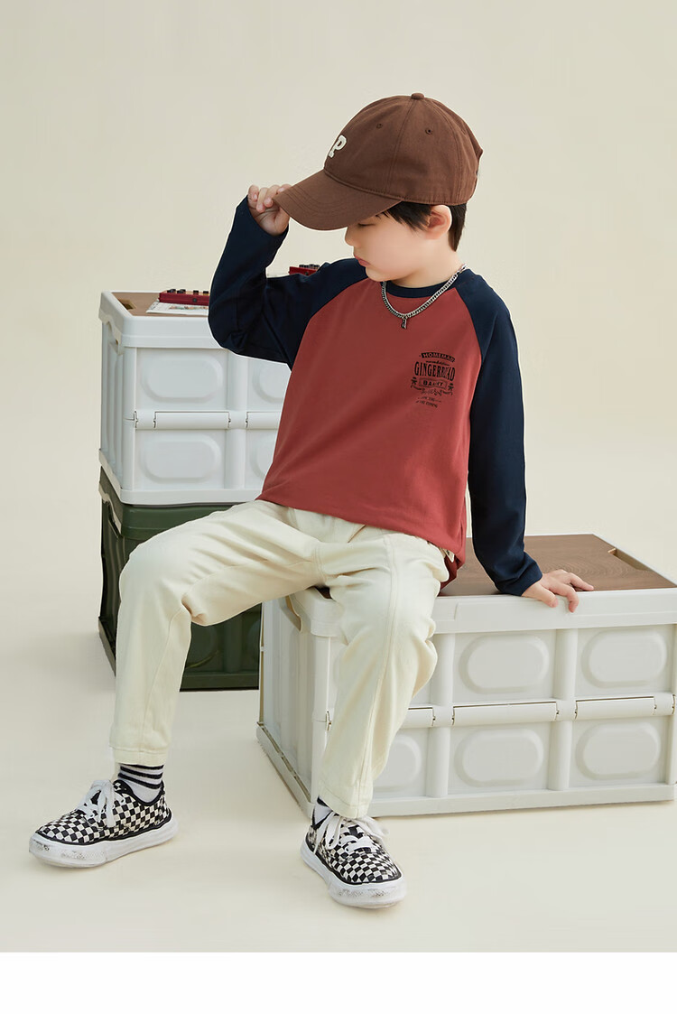 Duojia Children's Clothing 2026 Spring and Autumn Trendy Men's European and American Street Style Raglan Sleeve Printed Children's T-shirt Medium and Large Children's Cotton Long Sleeves