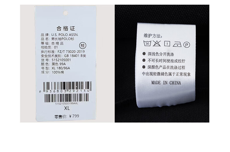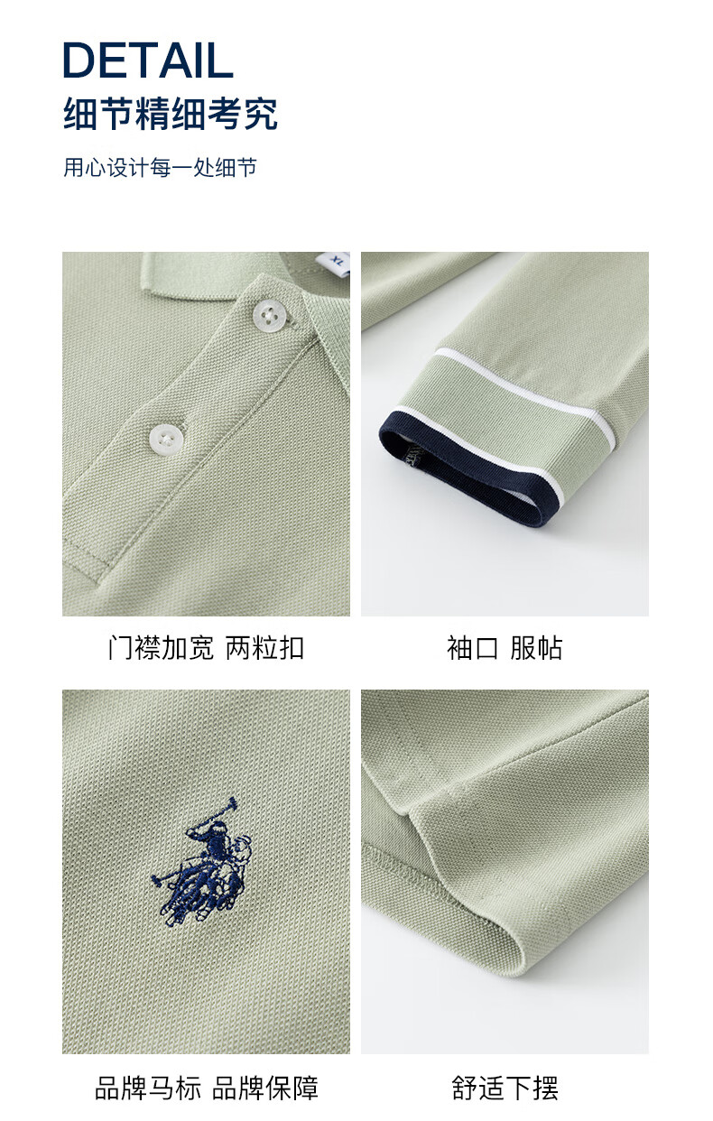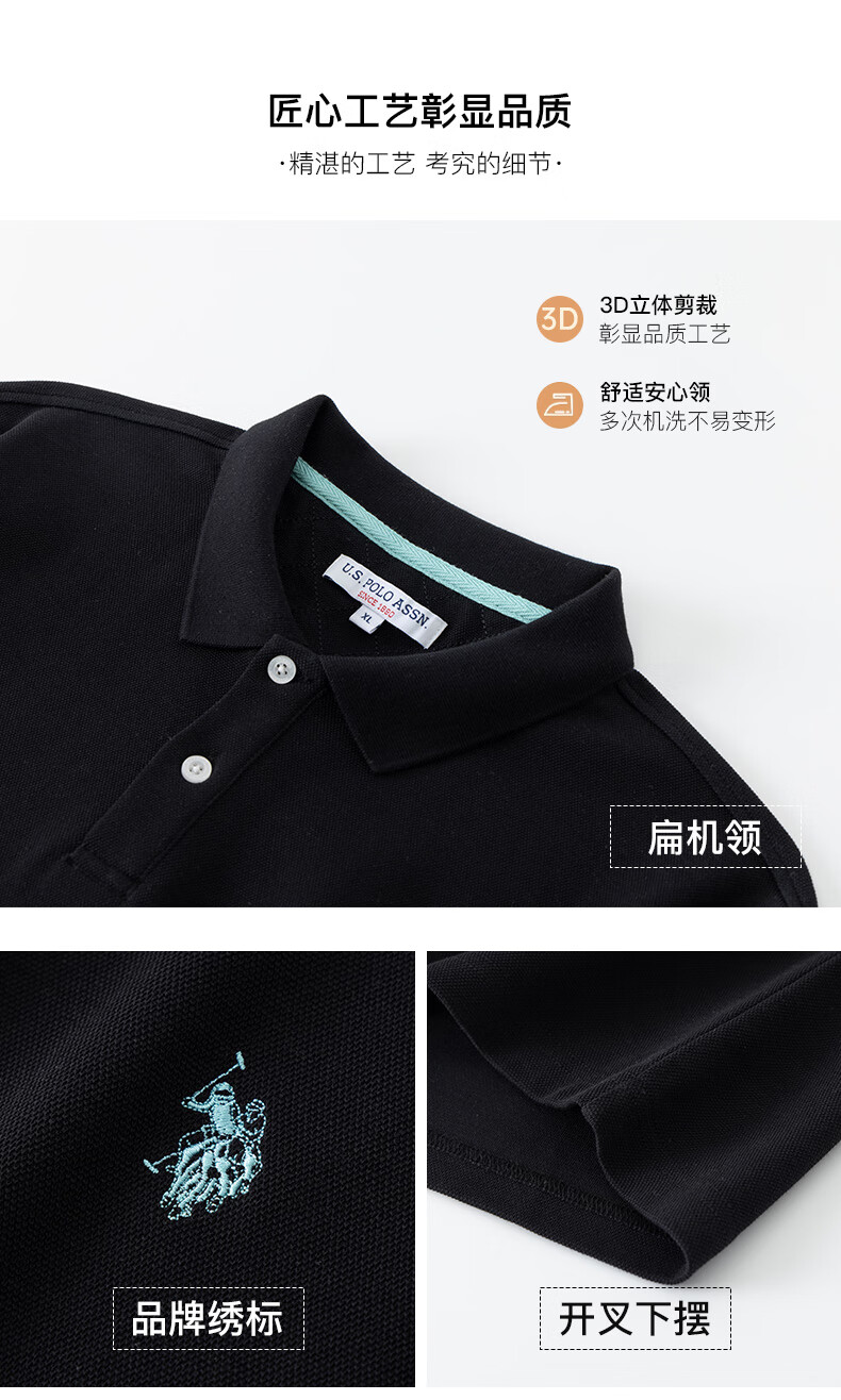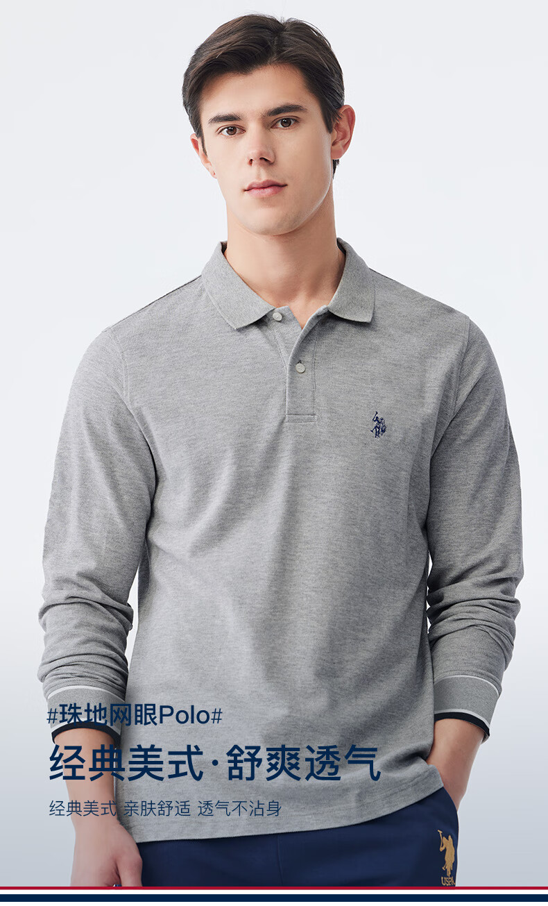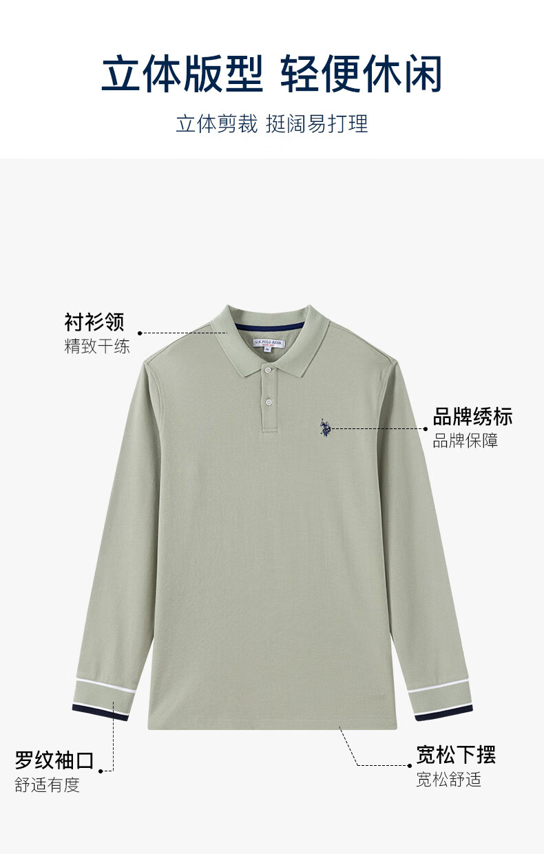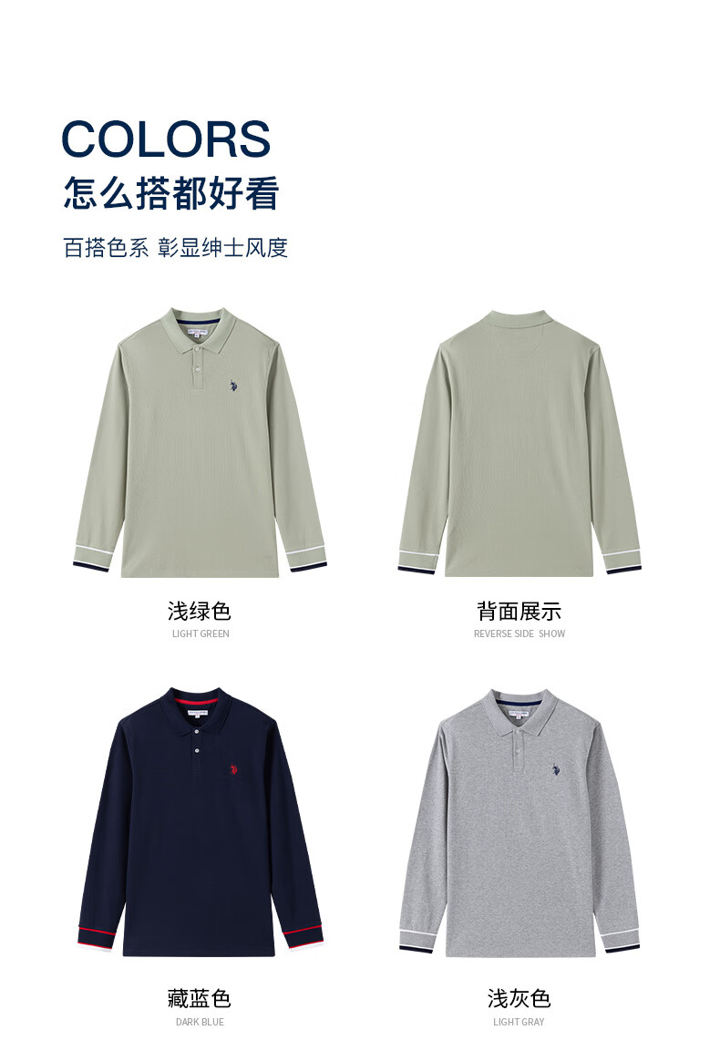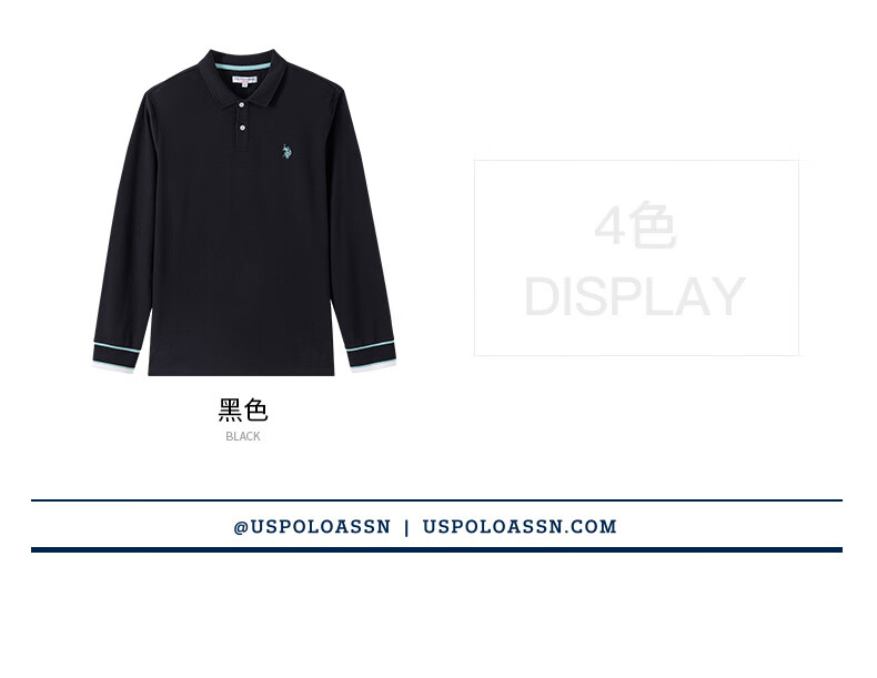 U.S. POLO ASSN.polo shirt men's autumn and winter business casual heavyweight cotton t-shirt men's long-sleeved top men's navy blue XL
