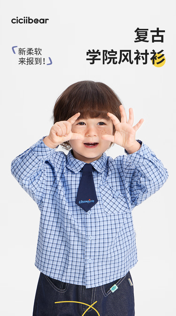 Qi Qi Xiong Budding Scholar Qi Qi Xiong Baby Plaid Shirt Boys College Style Shirt 2025 New Children's Pure Cotton