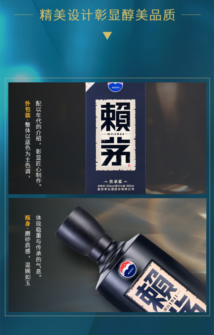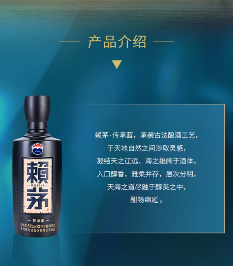 赖茅 传承蓝 酱香型白酒 53度 500ml*6 整箱装
