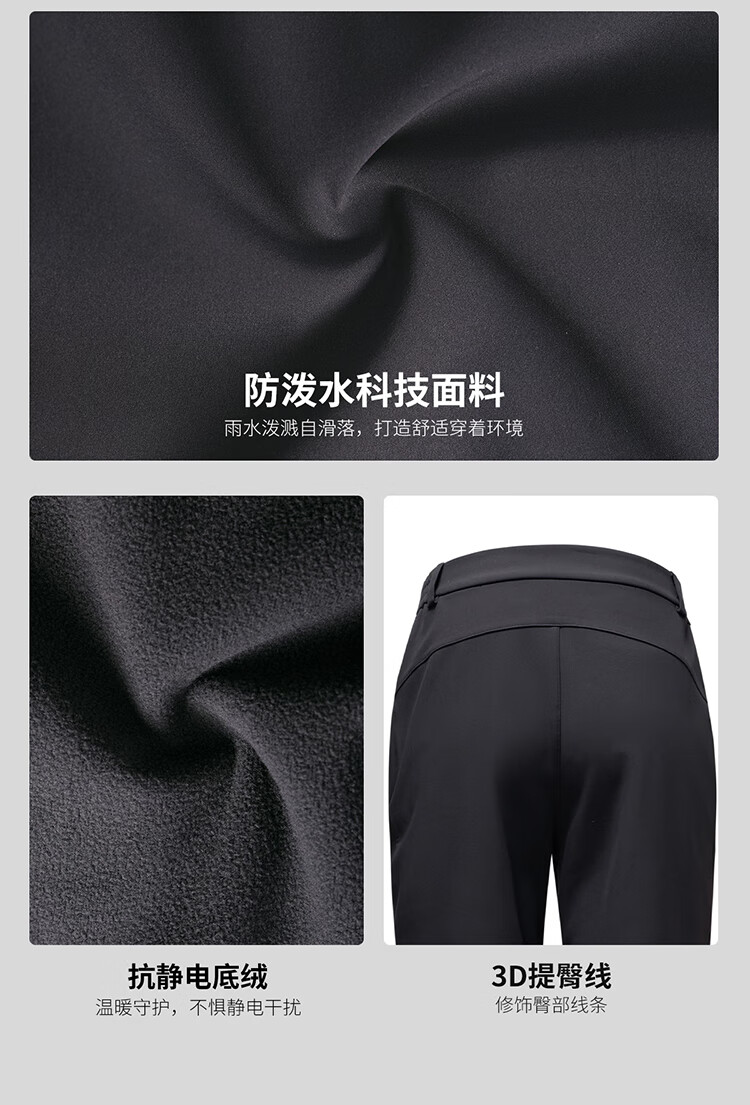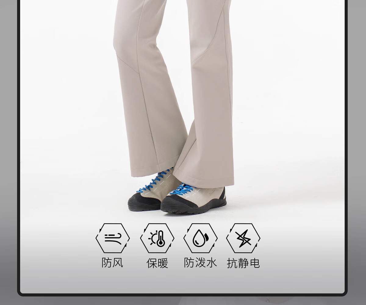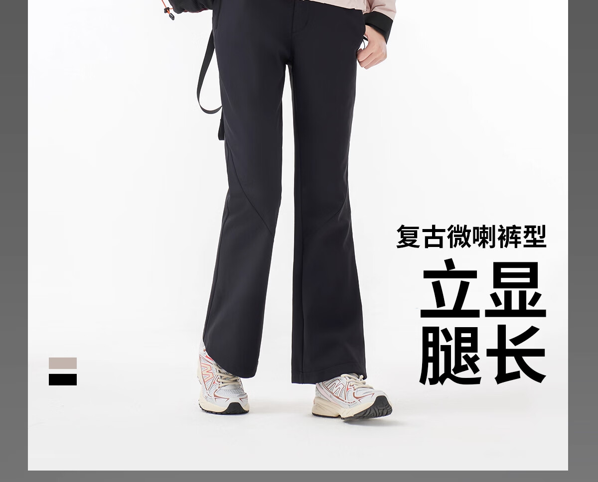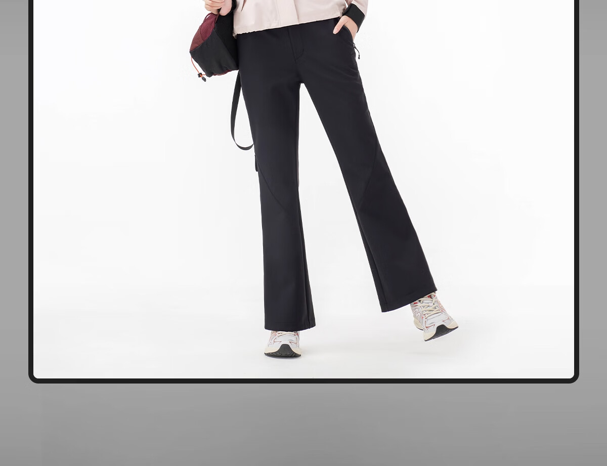 Camel (CAMEL) outdoor soft shell pants for women in autumn and winter, velvet, warm, anti-static, water-repellent, micro-flared pants, hiking and mountaineering trousers 9195