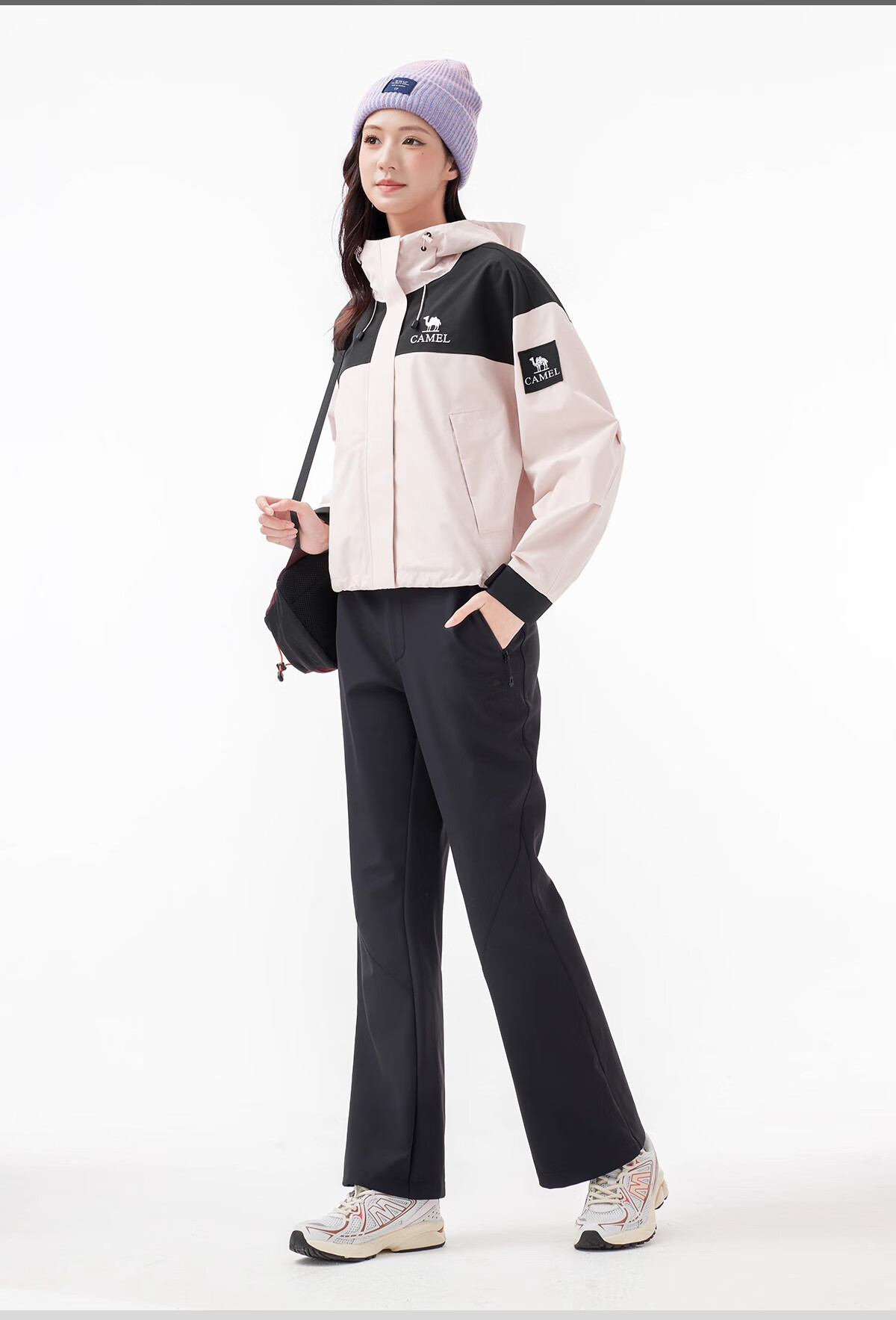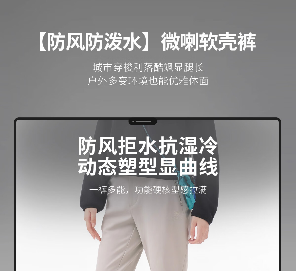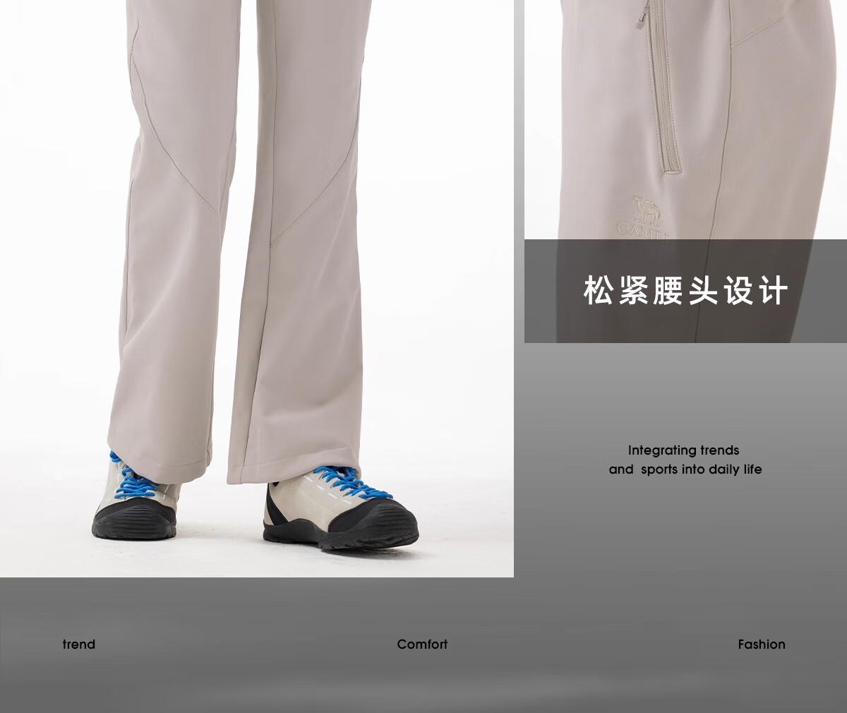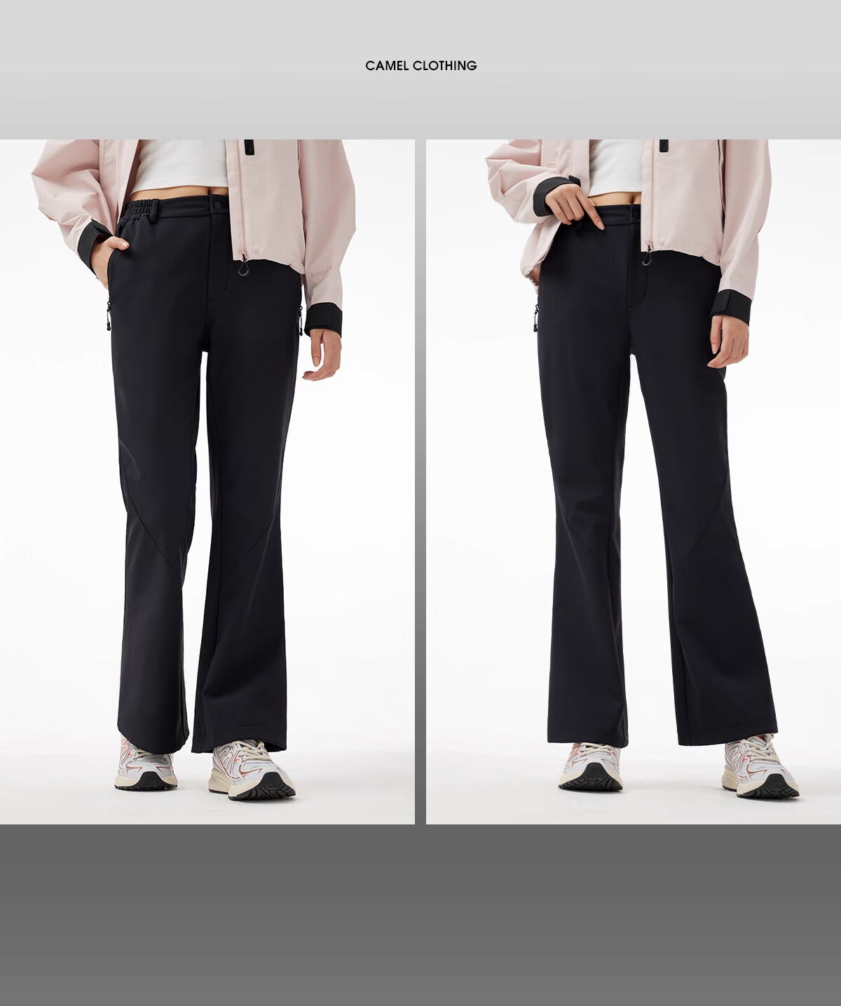 Camel (CAMEL) outdoor soft shell pants for women in autumn and winter, velvet, warm, anti-static, water-repellent, micro-flared pants, hiking and mountaineering trousers 9195