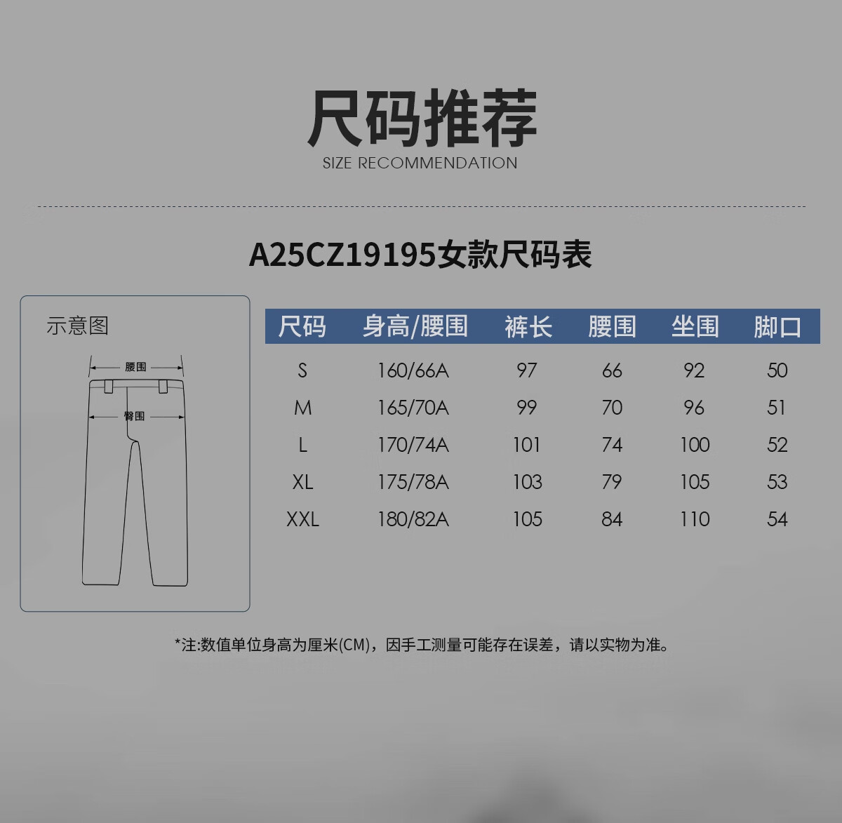 China (cm) 160-165/84-86 165-170 / 88-90 167-172 / 92-96 168-173 / 98-102 170-176 / 106-110