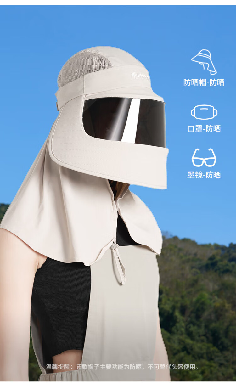 Kenmont large brim neck protection medical sun protection hat mask integrated face mask covering the whole face UV protection quick-drying sun hat 6131