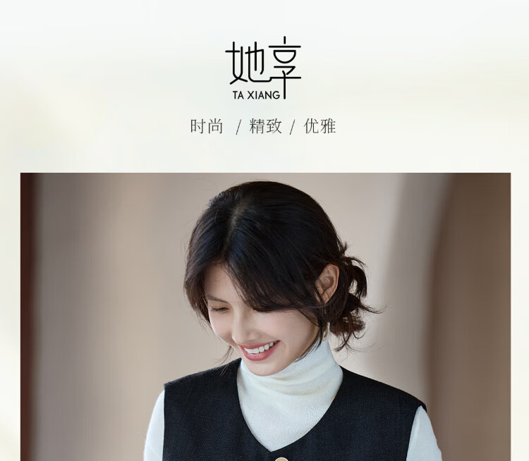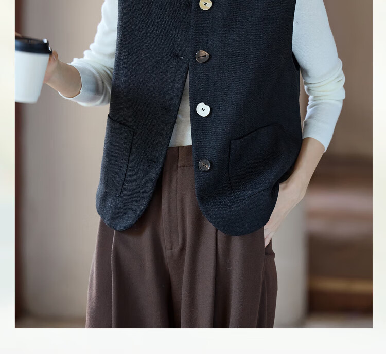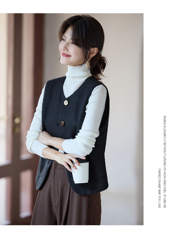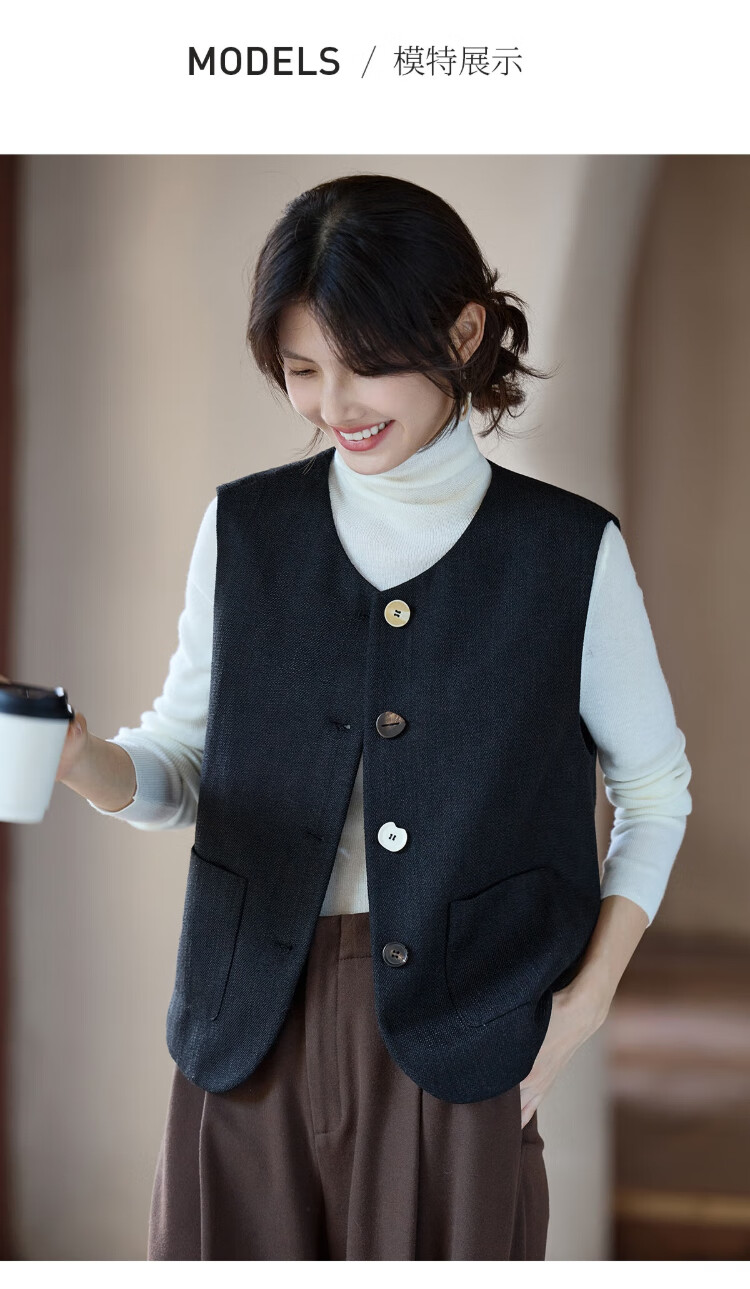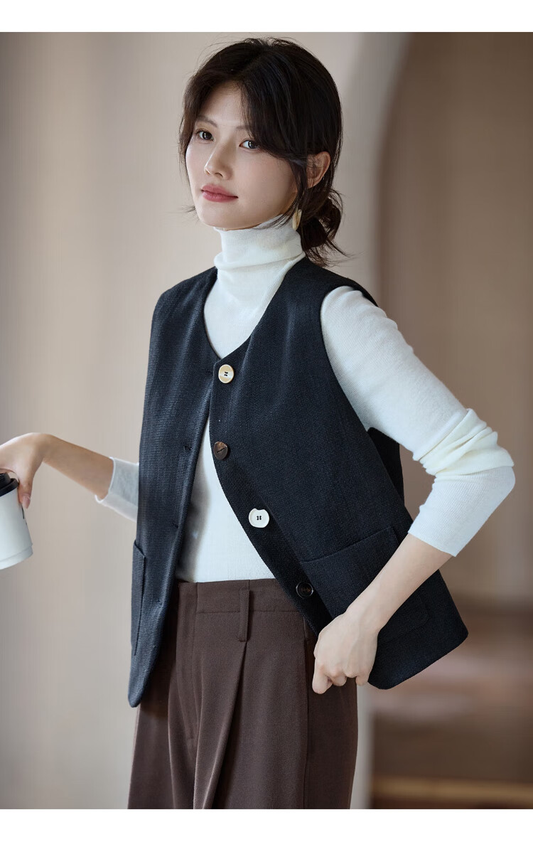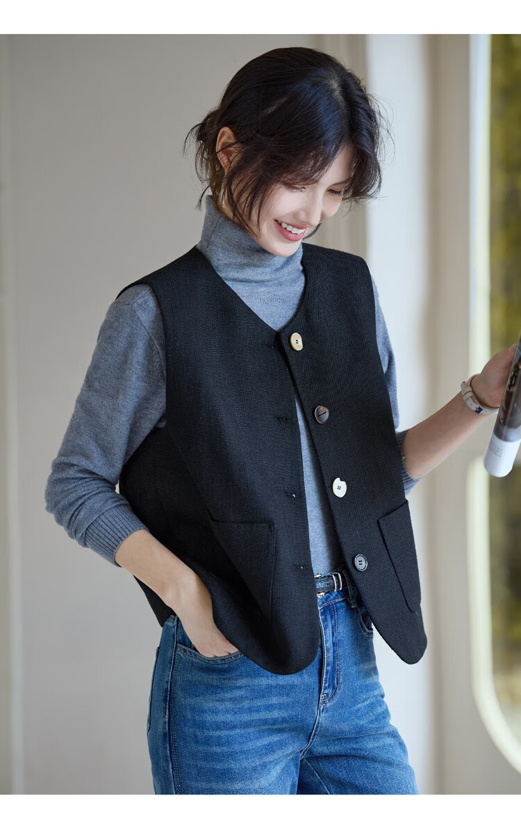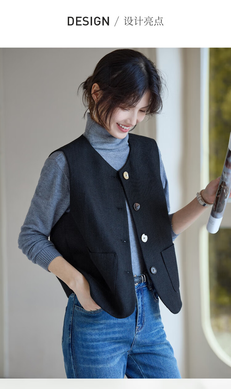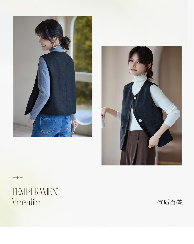 She enjoys the autumn and winter round neck small suit vest and feminine commuting sleeveless waistcoat top T53U105