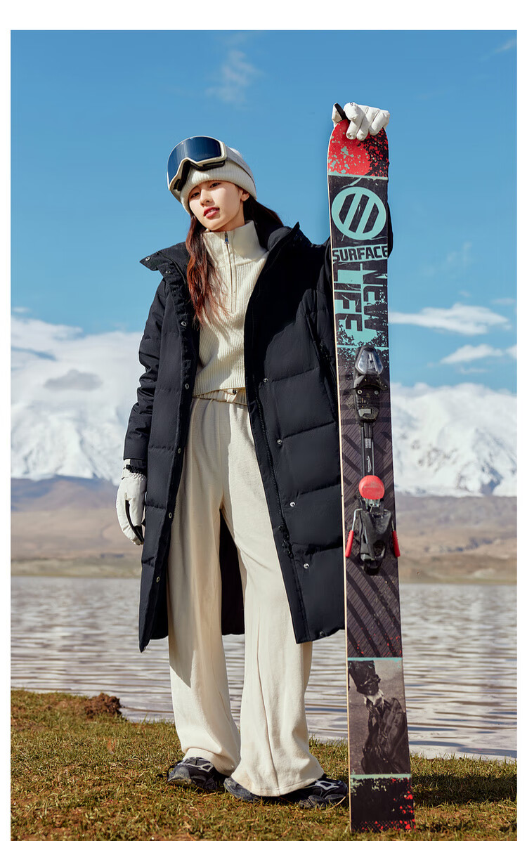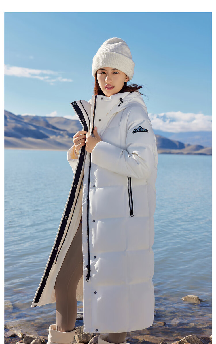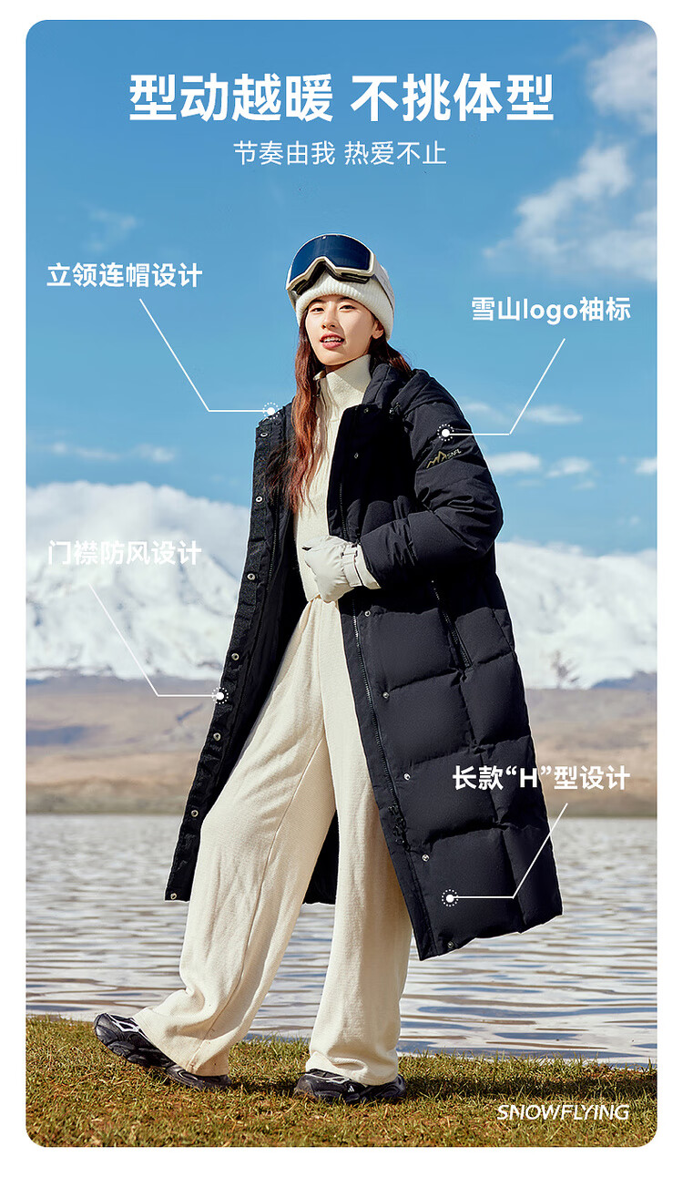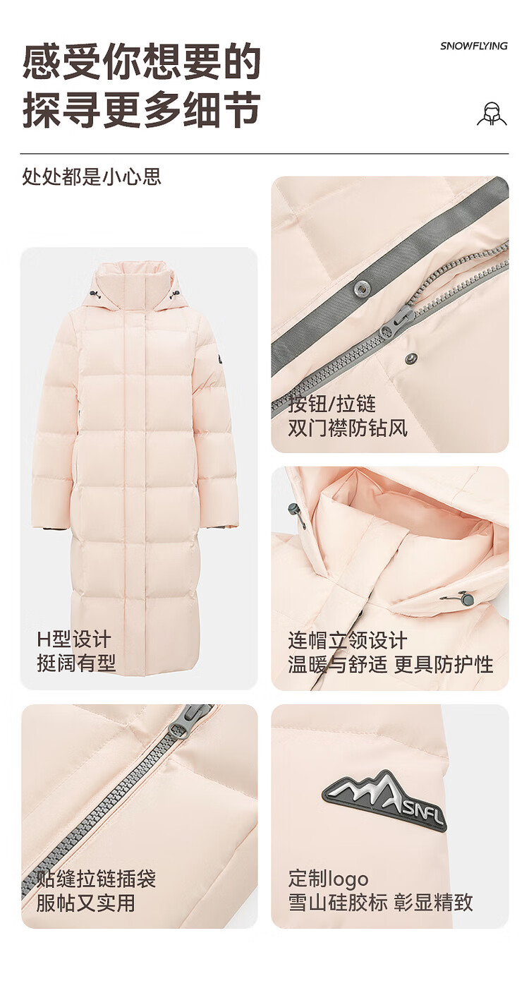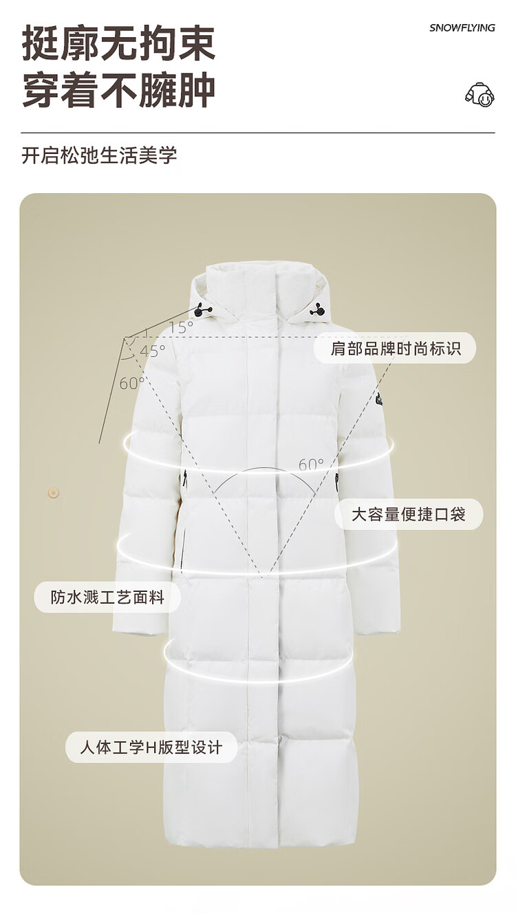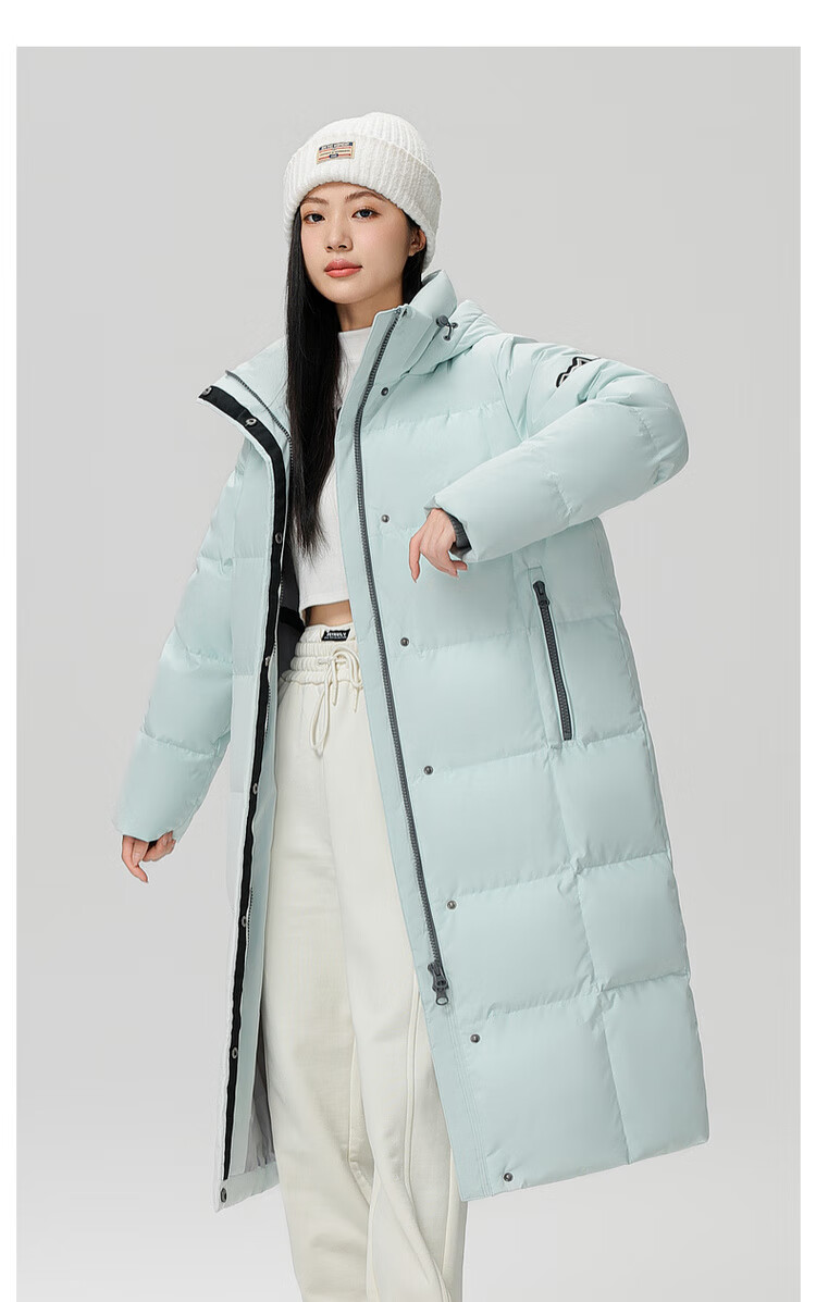Flying in the snow goose down autumn and winter new fashion versatile large pocket large long hooded women's down jacket for women