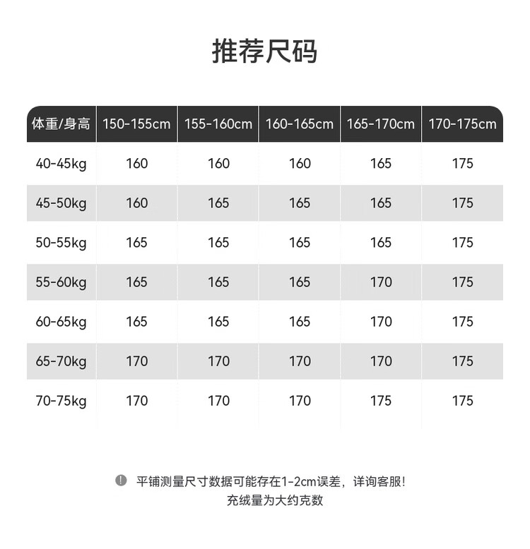 China (cm) 160-165/84-86 165-170 / 88-90 167-172 / 92-96 168-173 / 98-102 170-176 / 106-110