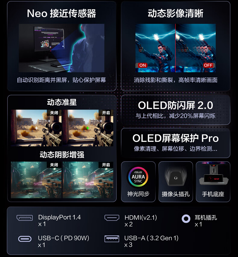 ASUS ROG XG27UCDMG 26.5-inch QD-OLED display 4K 240Hz display e-sports G-sync Type-C HDR400 DP1.4 true 10bit