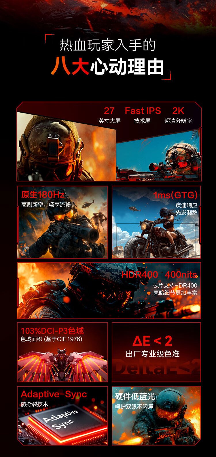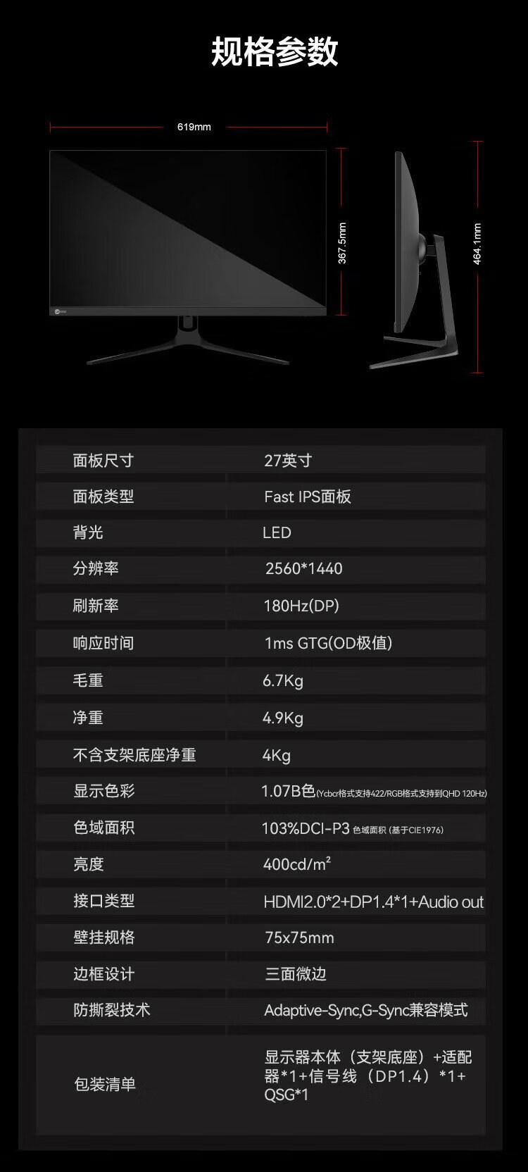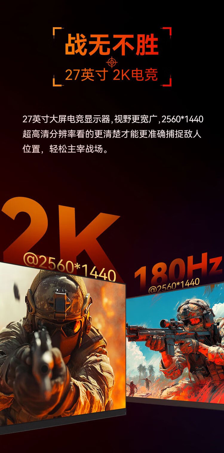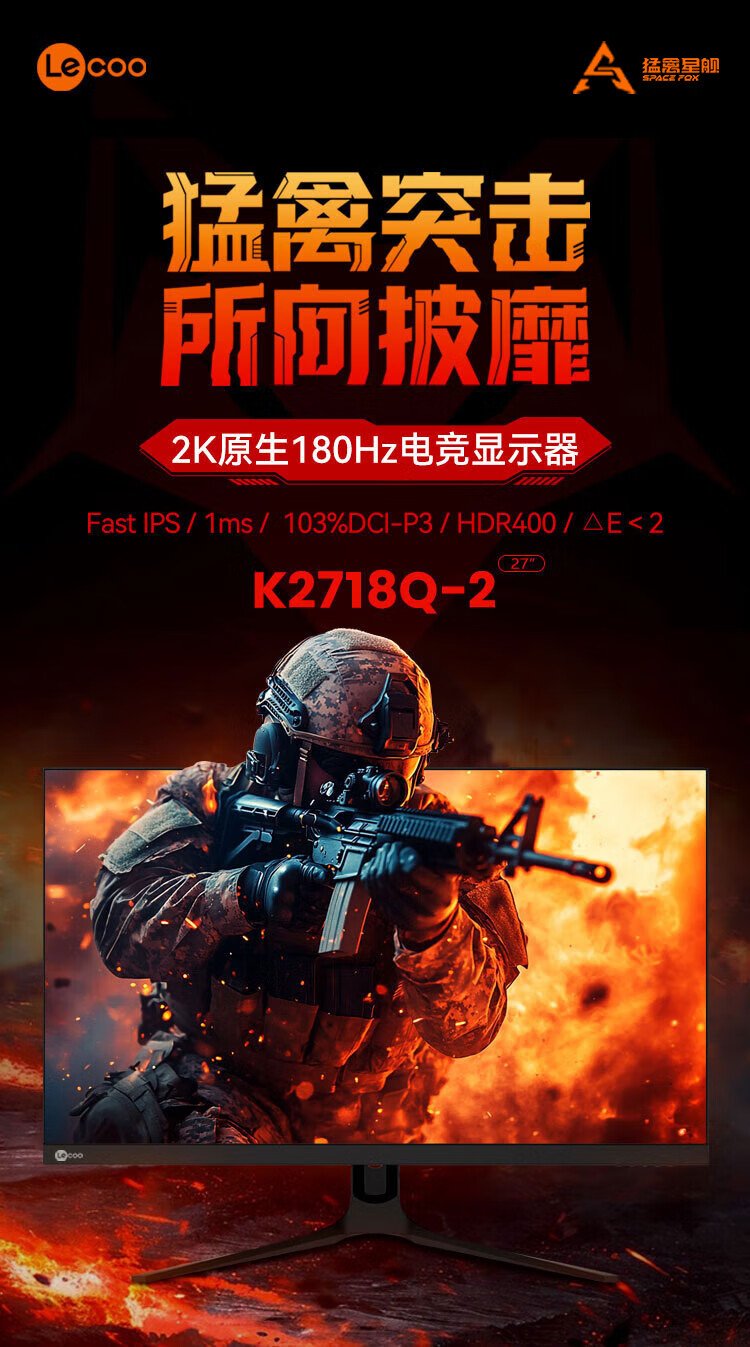 Lenovo Cool 27-inch 2K180Hz HD FastIPS screen 1msHDR hardware low blue light 400 brightness e-sports gaming computer monitor Raptor K2718Q-2