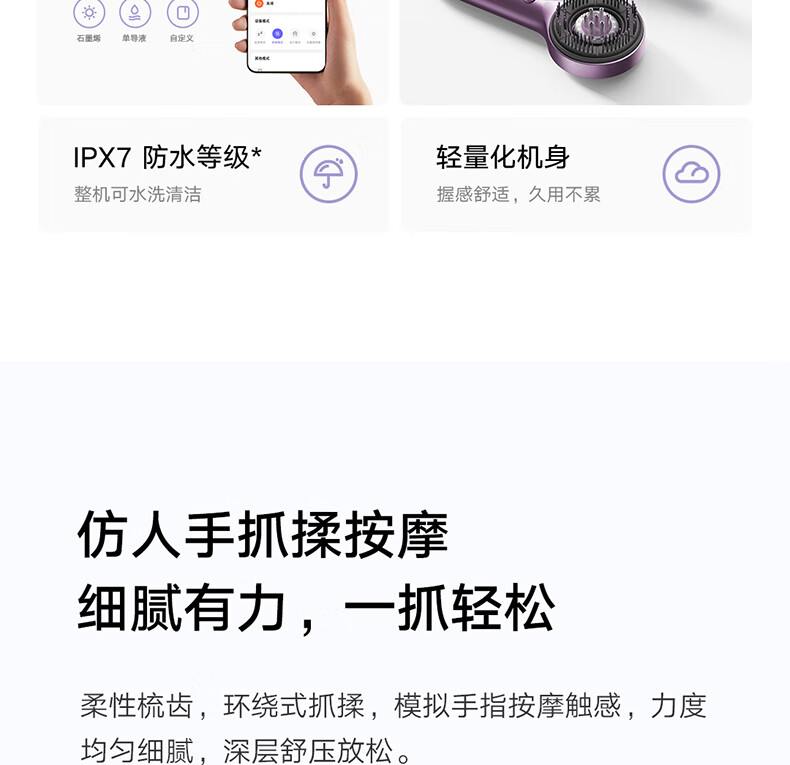 Mijia Head Massager, Red Light Care Massage Comb, Graphene Temperature Sensing Fluid Conduction Smart Electric Scalp Massage Instrument, Birthday Gift for Boyfriend and Girlfriend