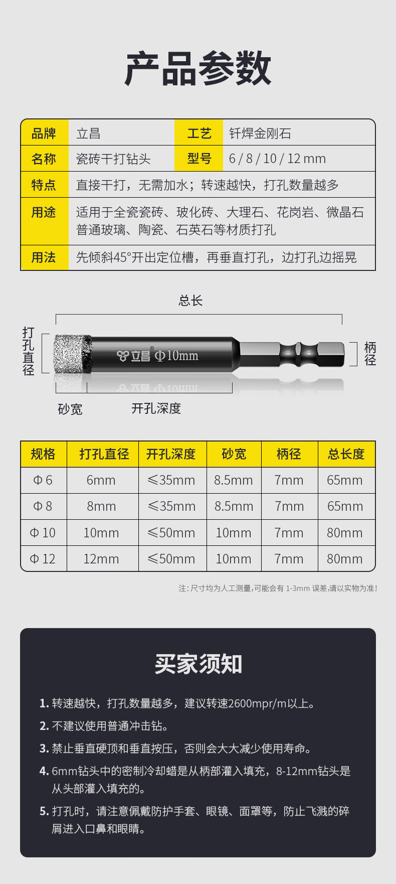 Lichang ceramic tile drilling special drill bit dry drilling stone glass marble artifact hand electric drill complete ceramic tile hole opener