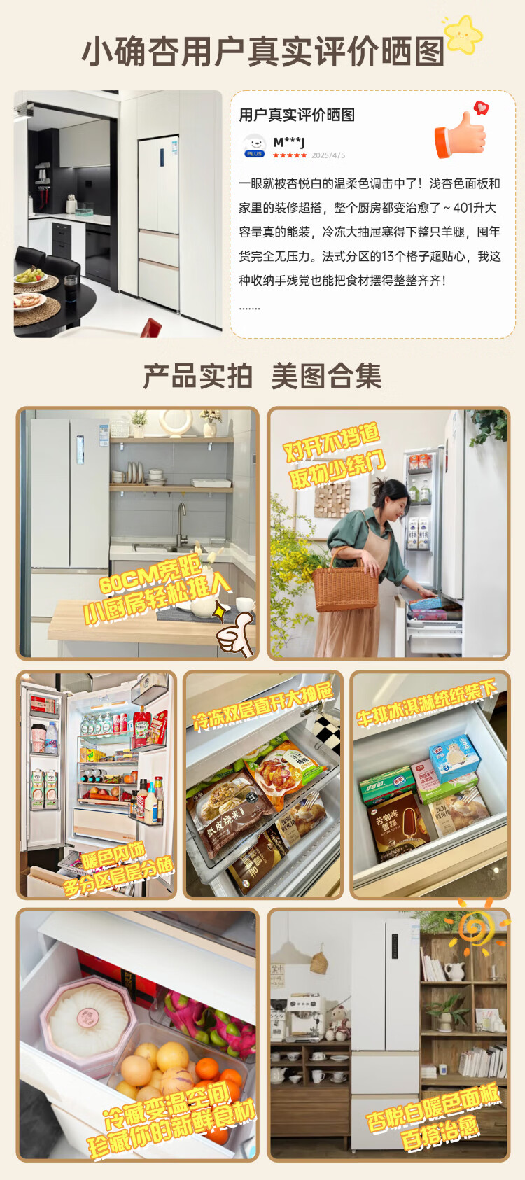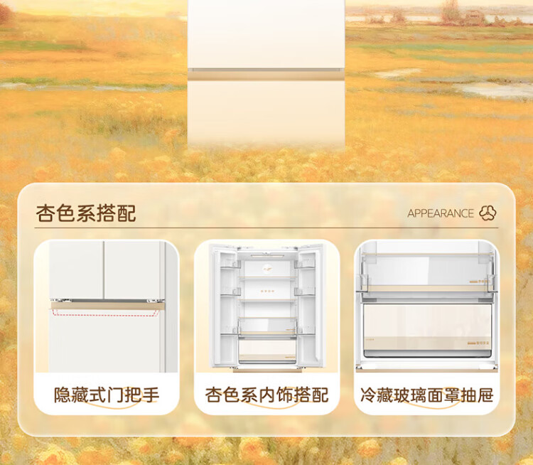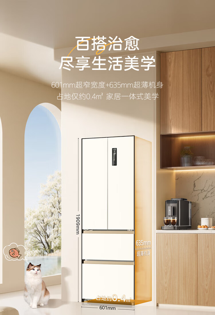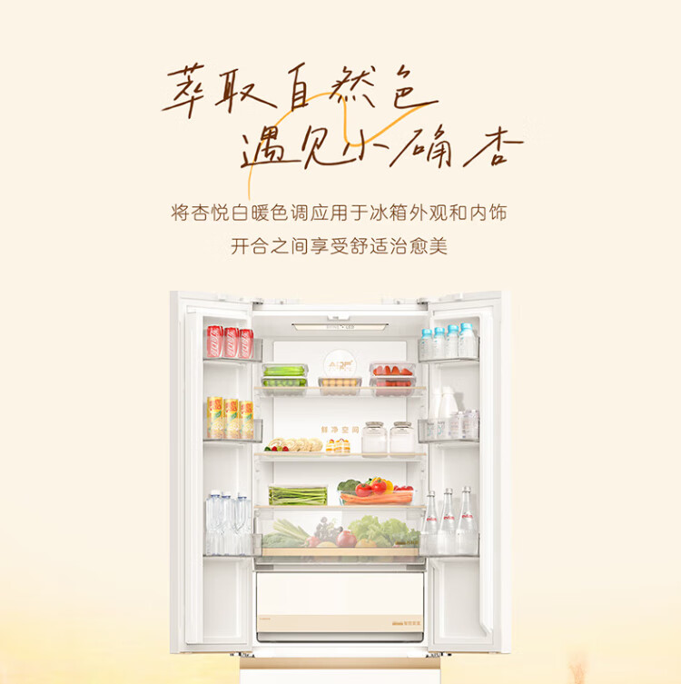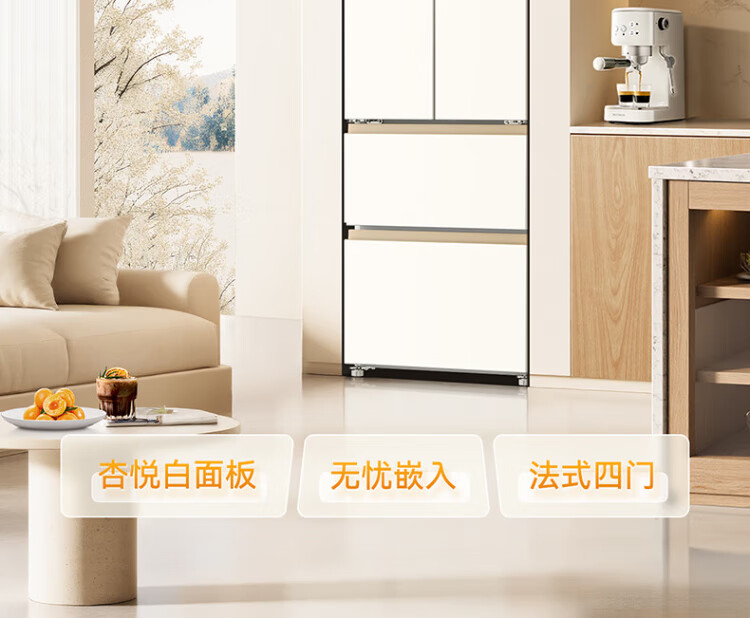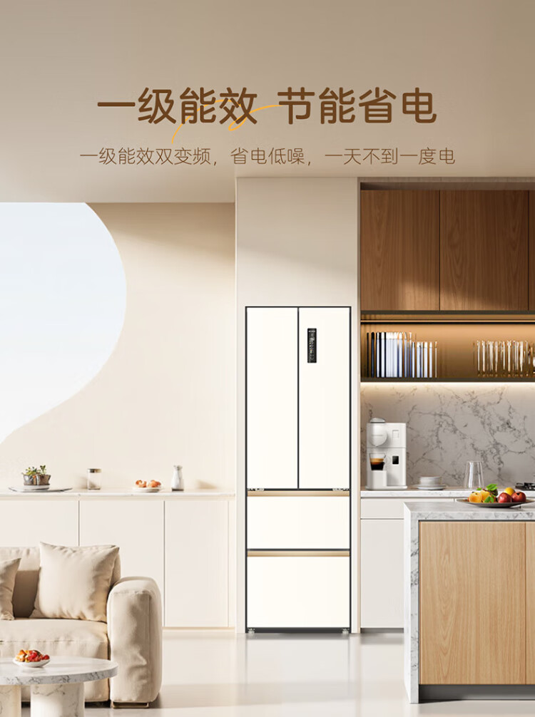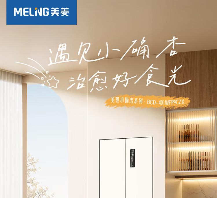 MeiLing small apricot 401 liter French refrigerator small household bottom cooling 60cm wide ultra-thin narrow door embedded air cooling national subsidy BCD-401WFP9CZX Xingyue White