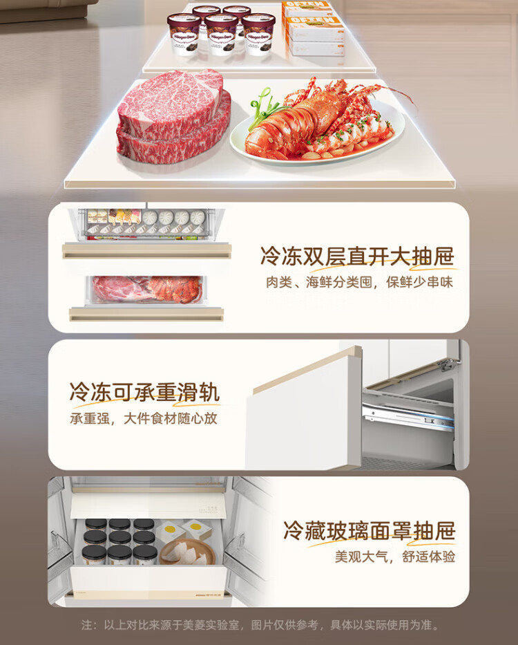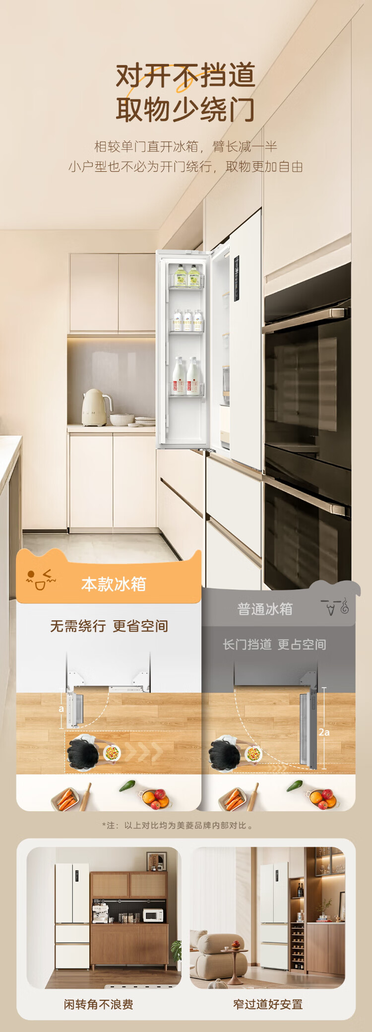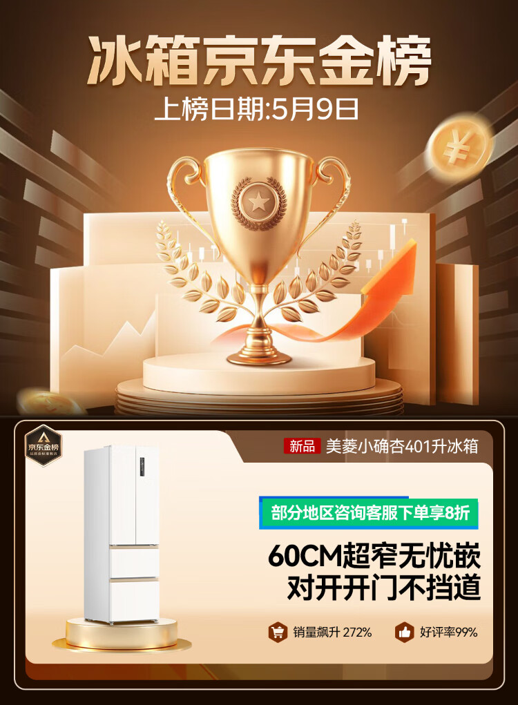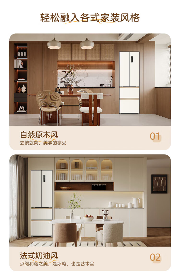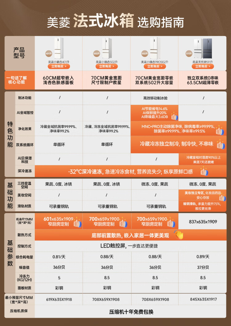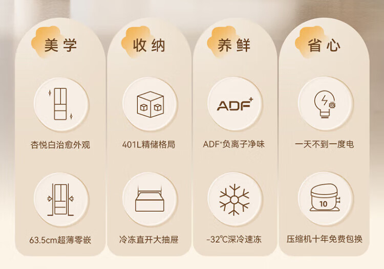 MeiLing small apricot 401 liter French refrigerator small household bottom cooling 60cm wide ultra-thin narrow door embedded air cooling national subsidy BCD-401WFP9CZX Xingyue White