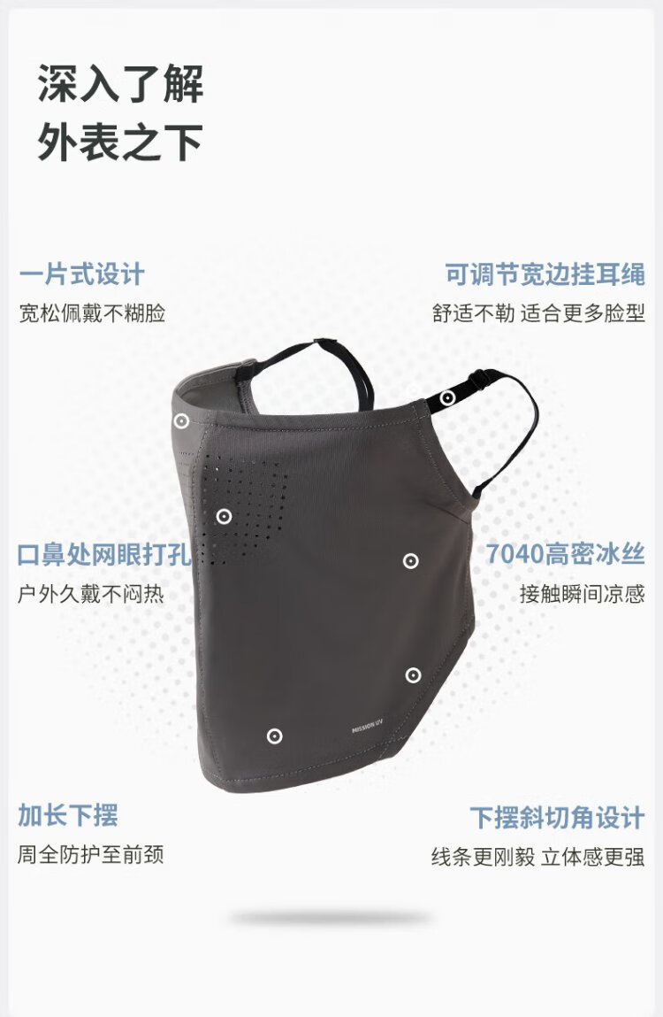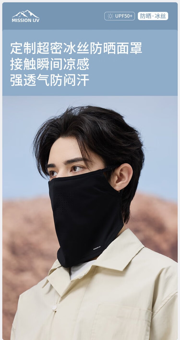 MISSION UV Ice Silk Sunscreen Mask for Men Cycling, Mountaineering and Fishing Summer Anti-UV Shade Breathable Full Face Sunscreen Mask