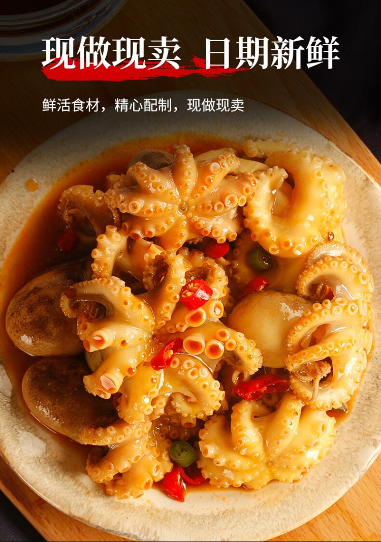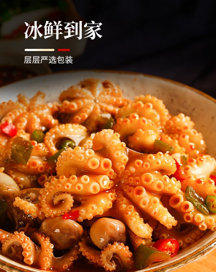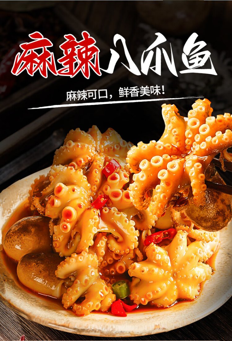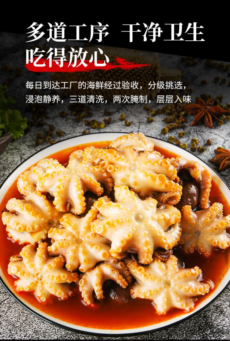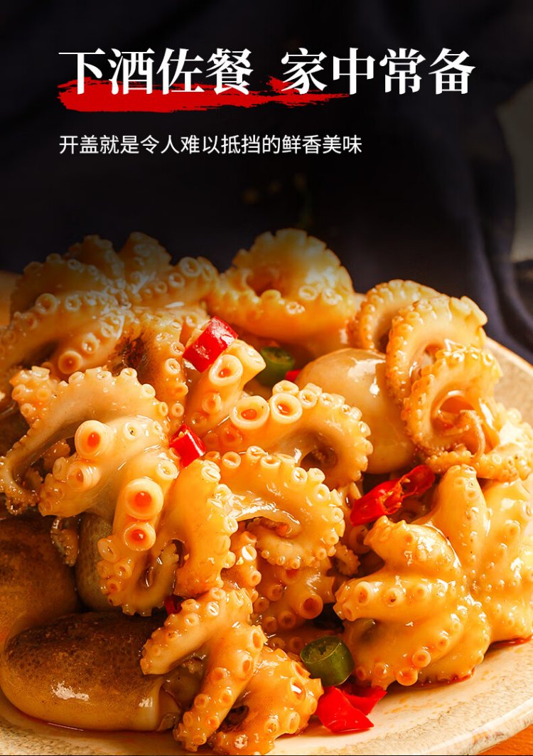 Three dolphins spicy octopus Qingdao fish juice small seafood small headshot eight belt seafood cooked food can 300g*3 cans