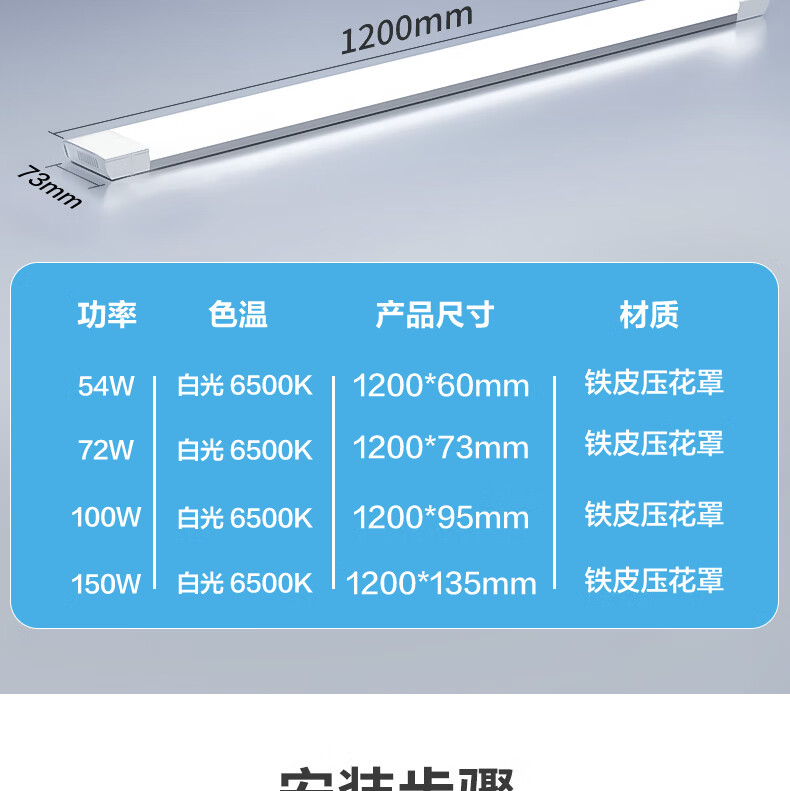 Beigong led lamp purification lamp integrated strip lamp 1.2 meters 100W white light office property garage project super bright lighting
