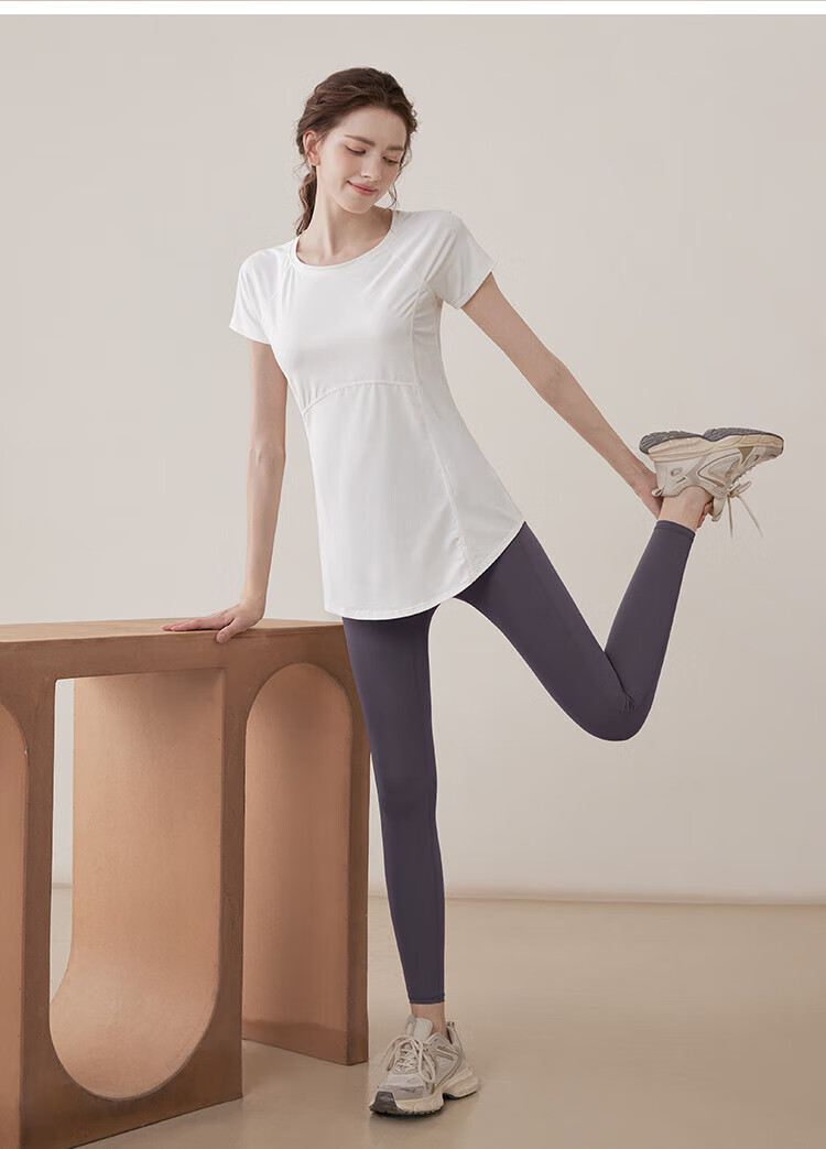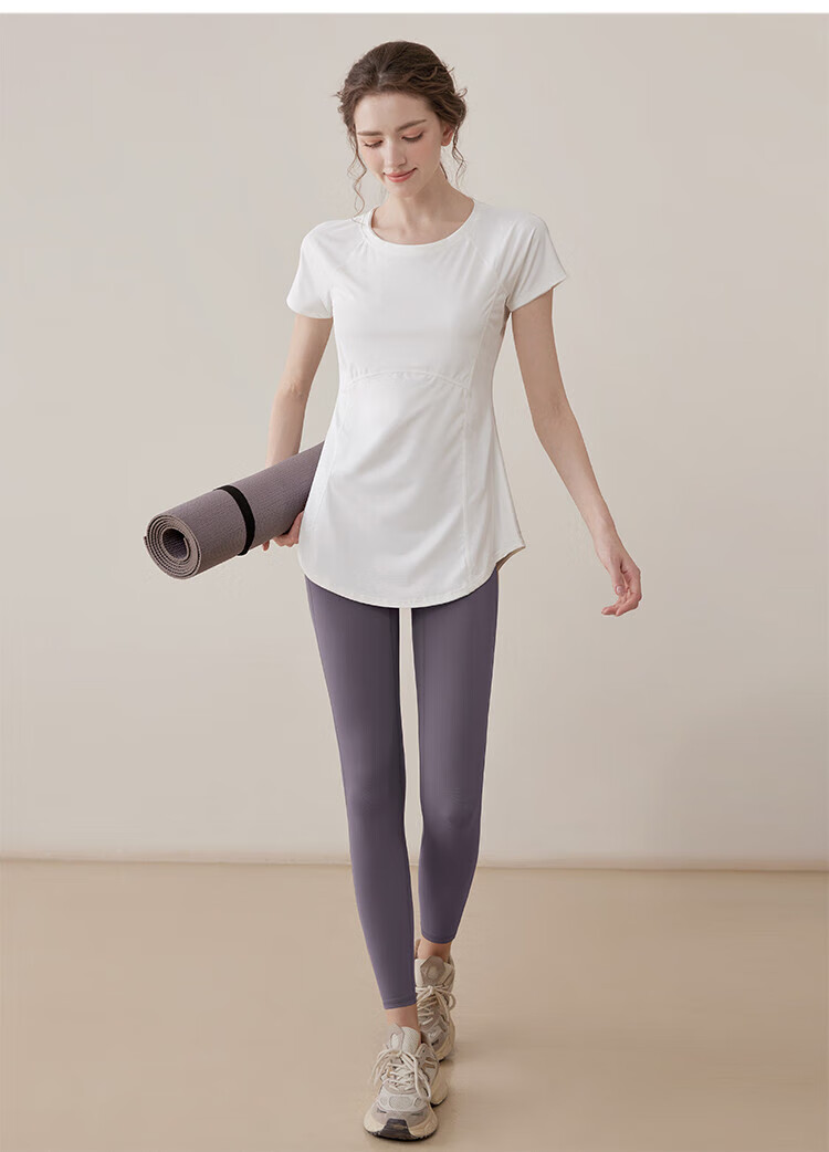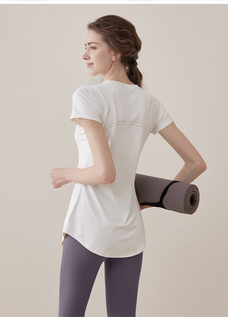 Youyou yoga clothing summer women's high-end slimming gym sports short-sleeved Pilates J34007DY white M