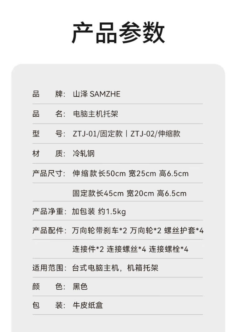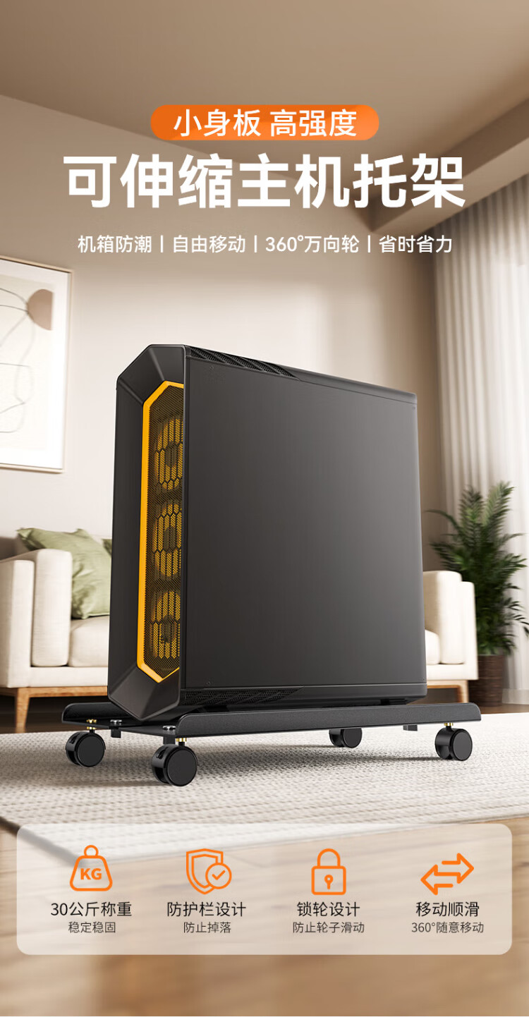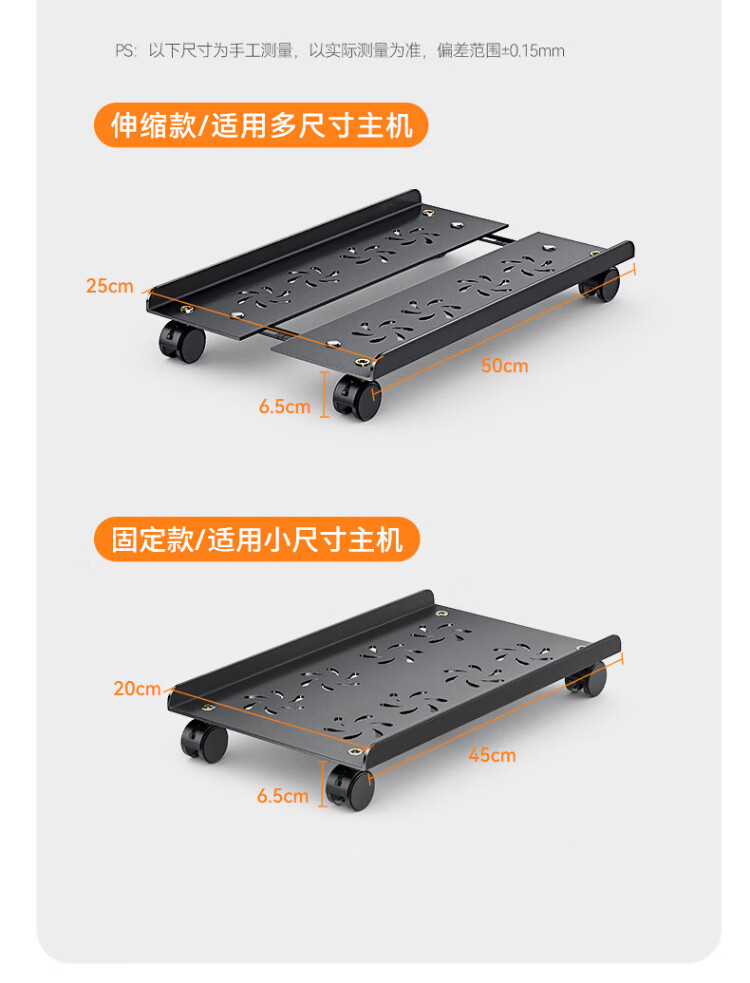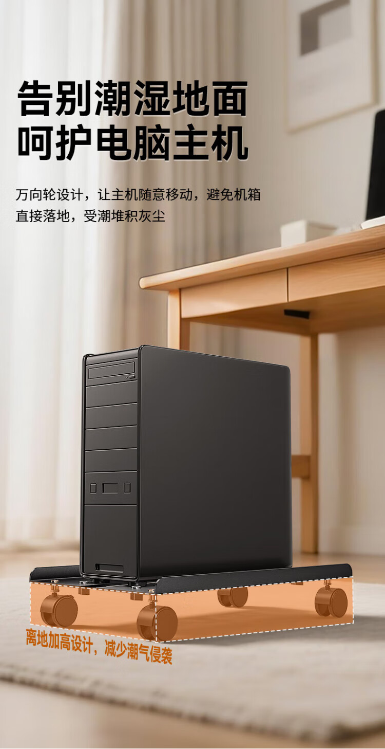 Shanze desktop computer main chassis bracket movable main chassis bracket base chassis tray universal pulley lock wheel brake metal material simple installation ZTJ-02