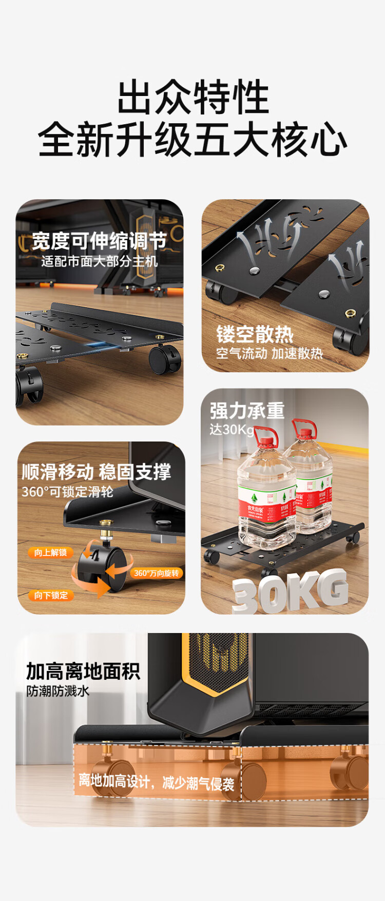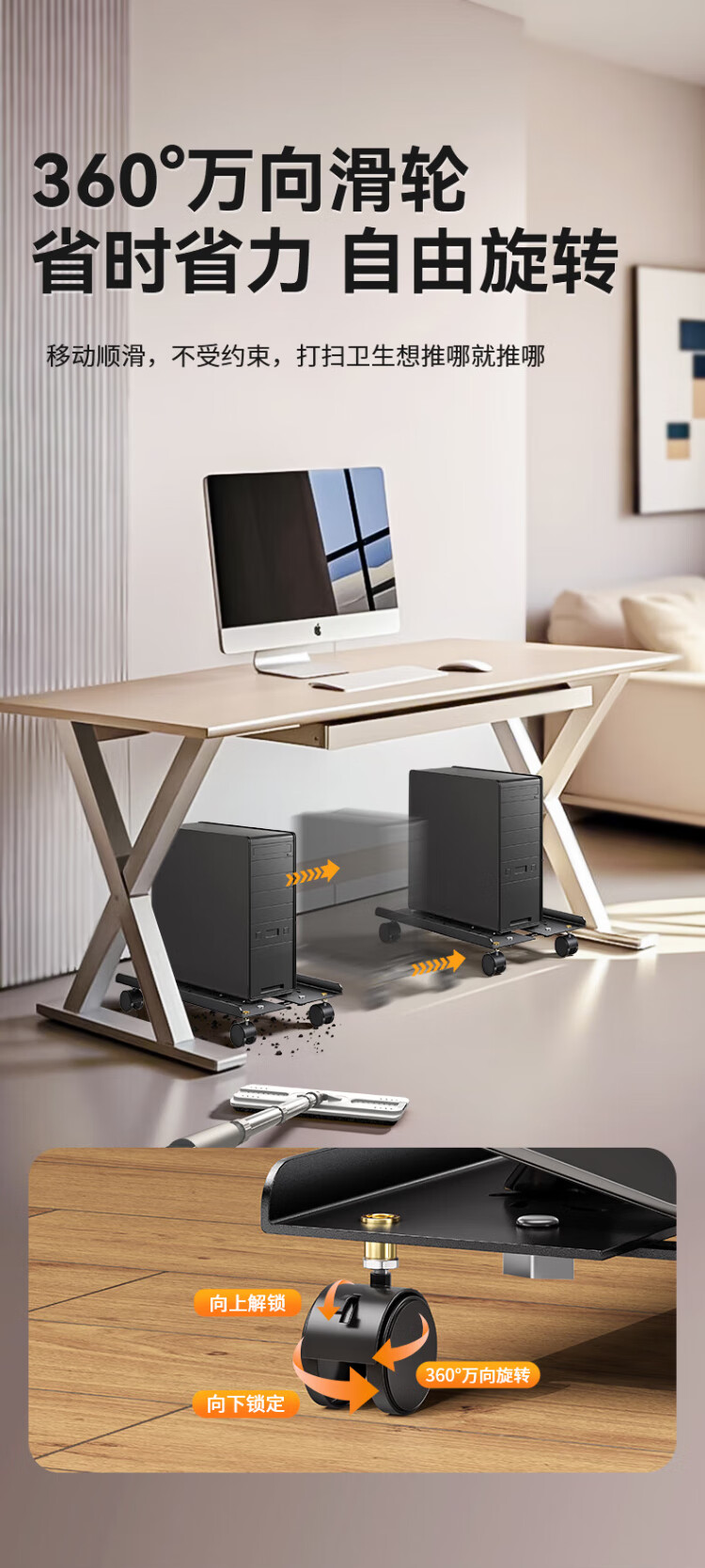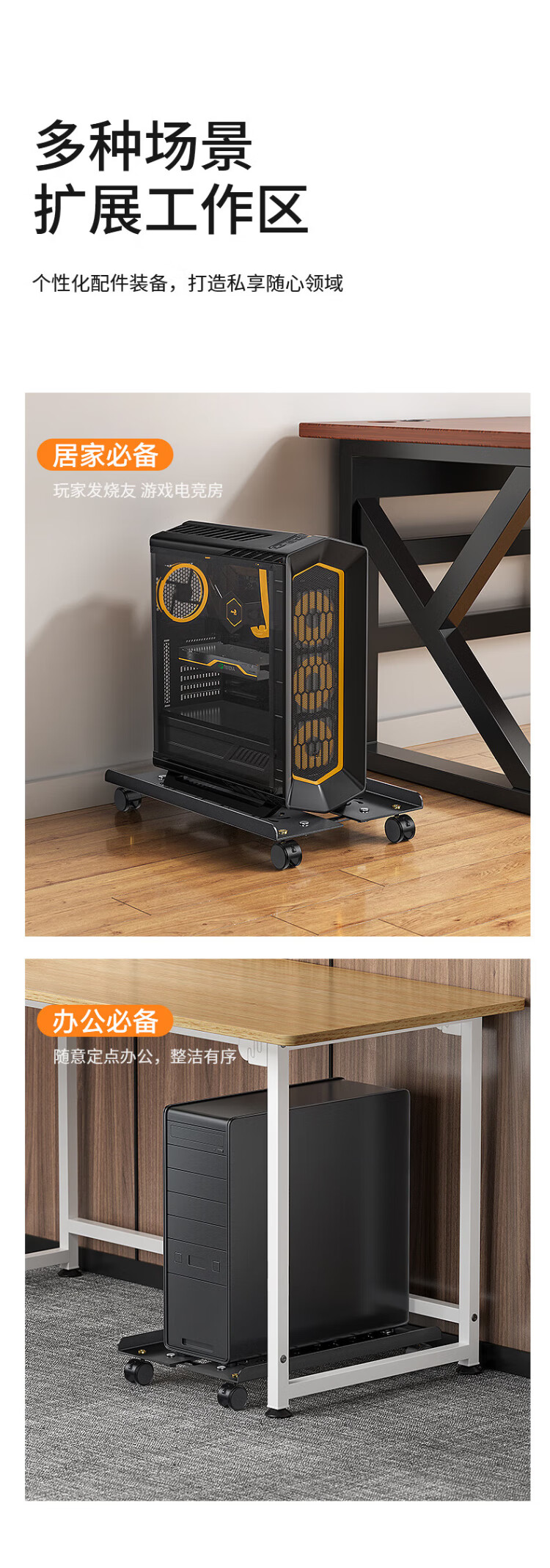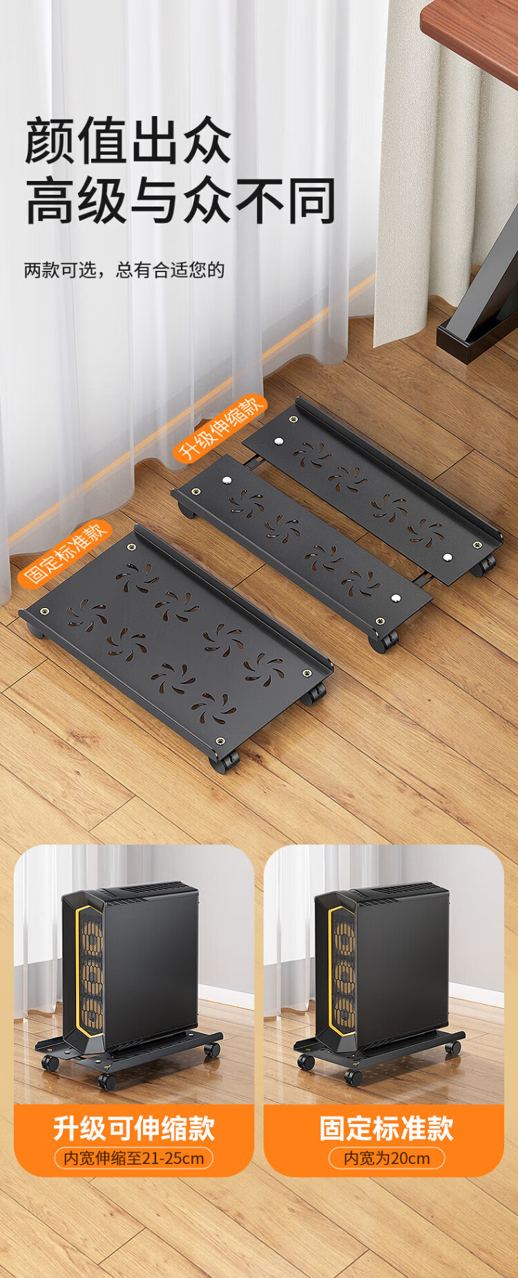 Shanze desktop computer main chassis bracket movable main chassis bracket base chassis tray universal pulley lock wheel brake metal material simple installation ZTJ-02