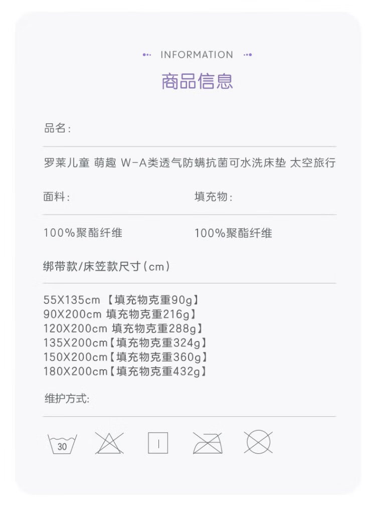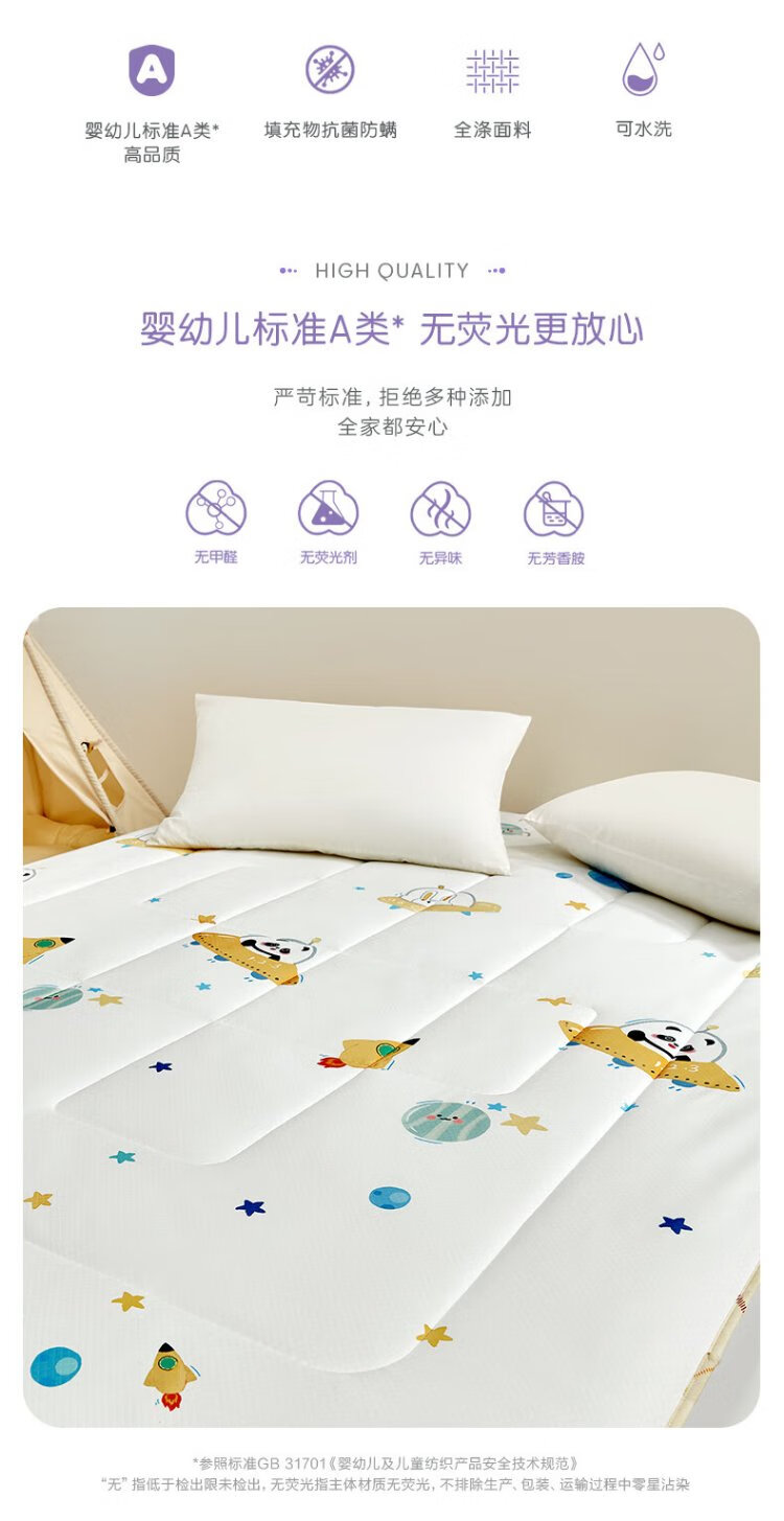 Luolai children's mattress baby Class A standard washable diaper antibacterial and anti-mite nursing pad large bed sheet 135*200cm