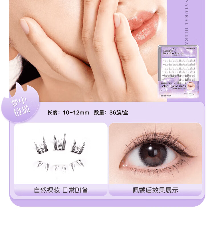 Ou Yizi's glue-free false eyelashes, natural simulation, long-lasting, glue-free, self-adhesive, easy-to-use combination for beginners, 36 clusters