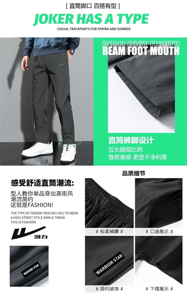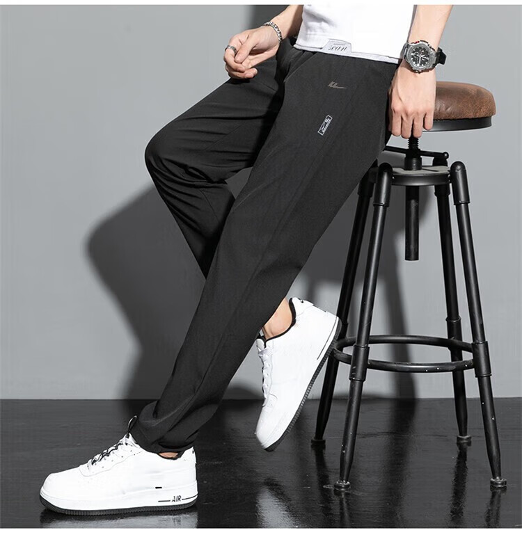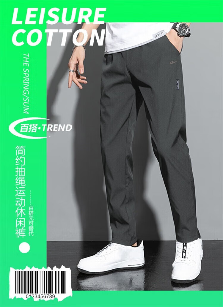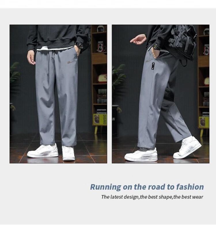 Pull-back casual pants for men, loose sports lace-up printed straight spring and autumn pants for men, trendy brand, versatile and comfortable men's pants