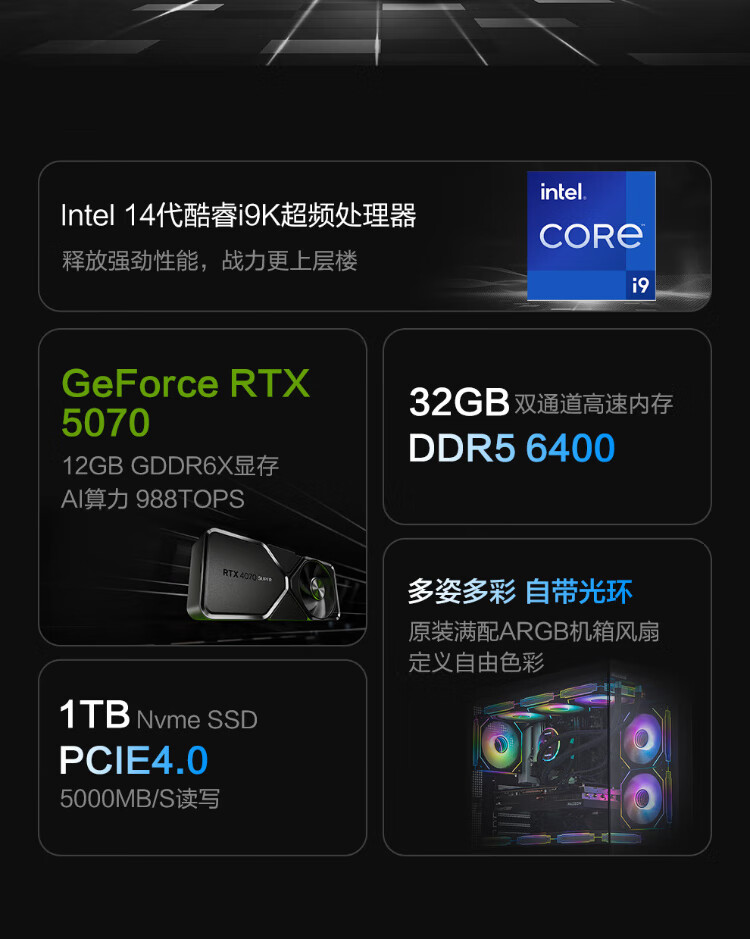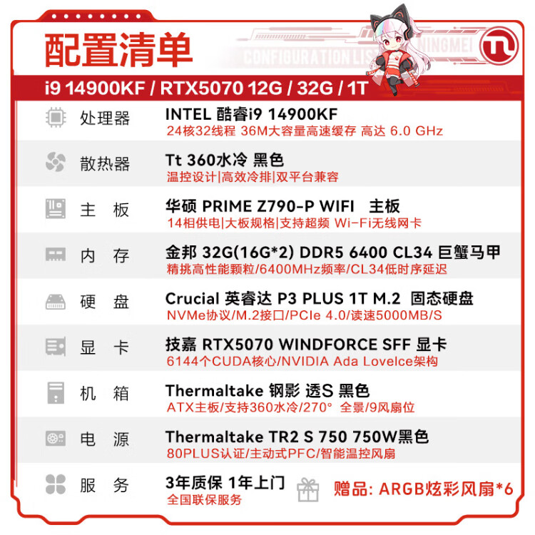 Ningmei Dusoul i9 14900KF/RTX5070/32G/1T D5 water-cooled designer e-sports gaming desktop computer host complete set DIY assembly machine UPC