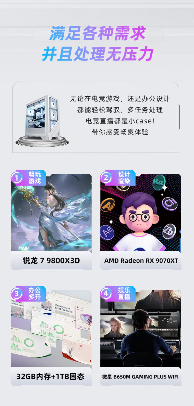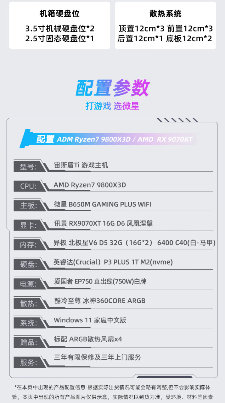 AMD&MSI Aegis Ti National Subsidy 20% Ryzen R7 9800X3D/RX9070XT/32G/1TB Black Myth Water-cooled E-Sports Gaming Desktop Computer Host