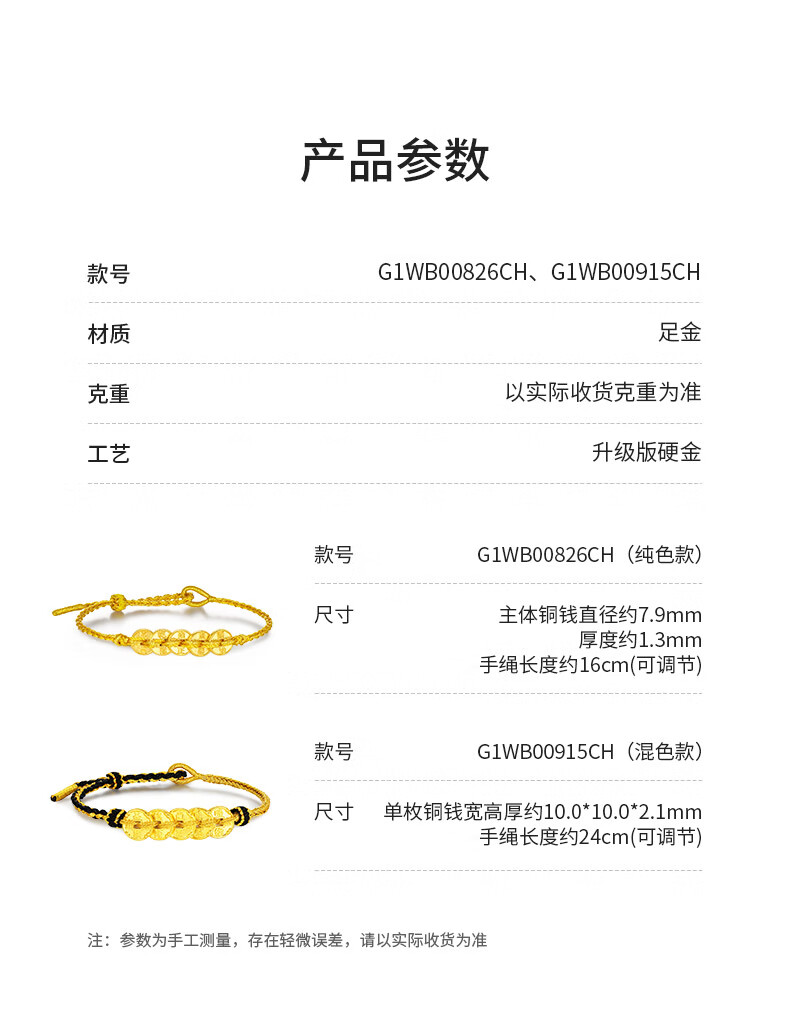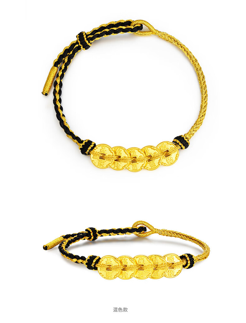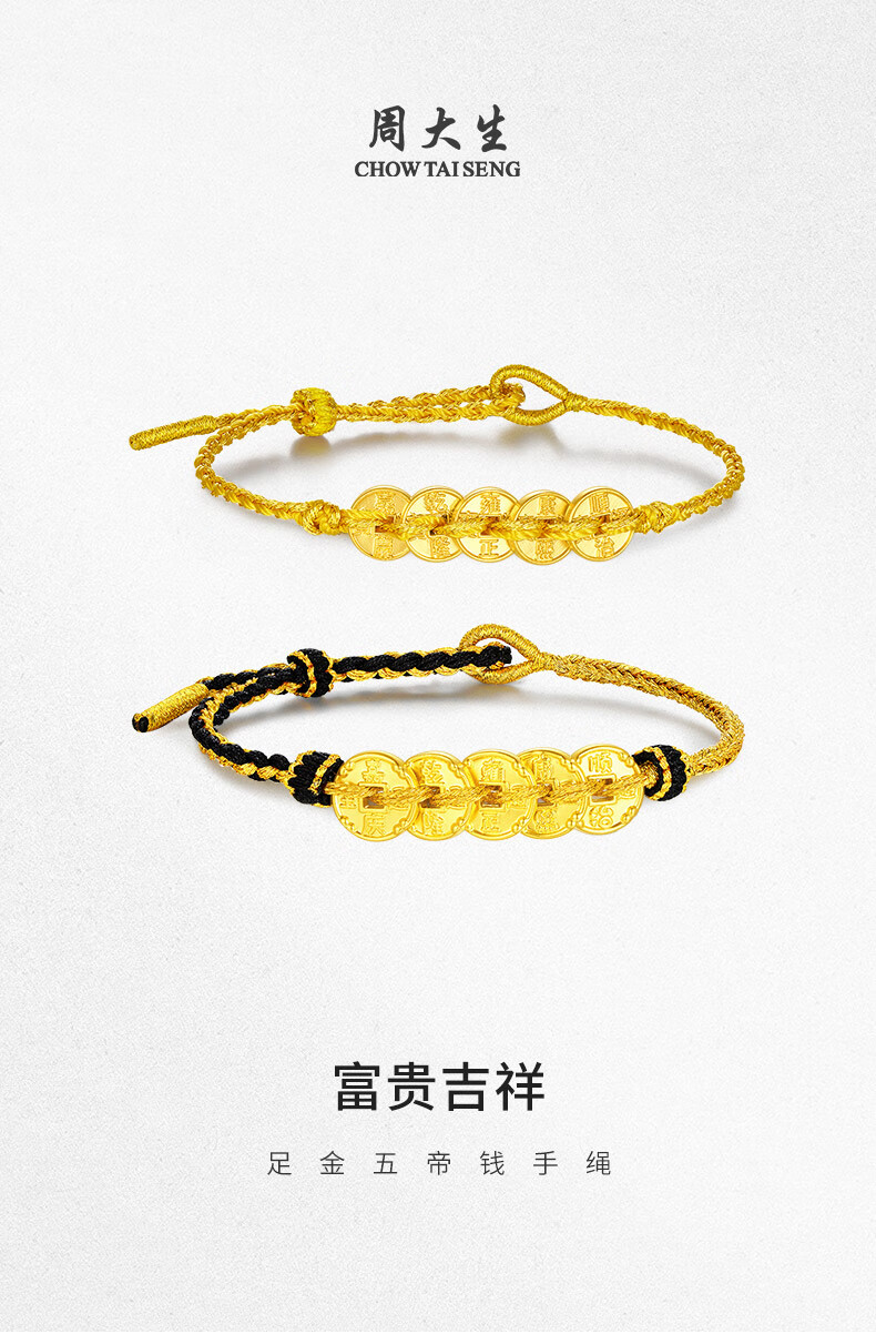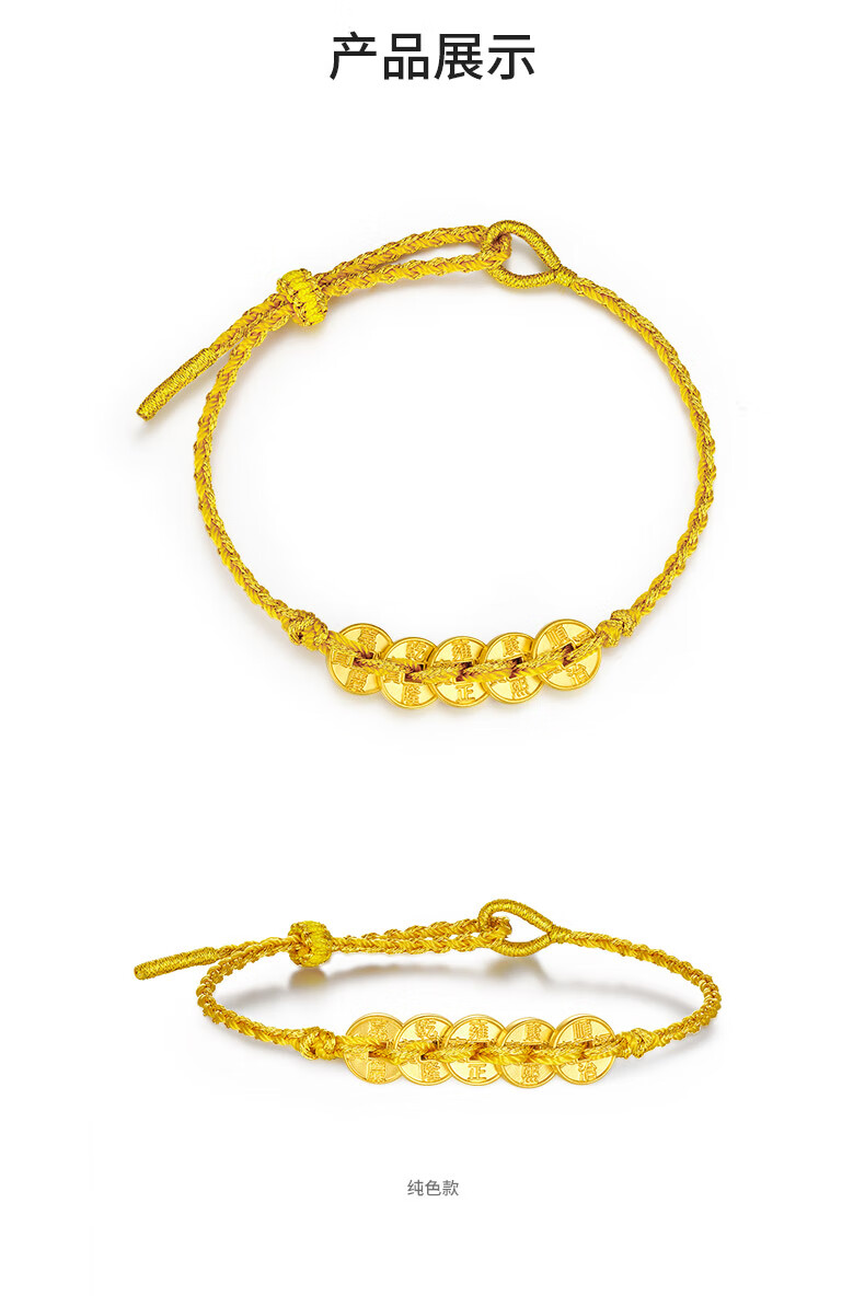 Zhou Taisheng Five Emperors Coin Gold Bracelet Pure Gold Copper Coin Bracelet Transfer Beads Birthday Gift for Girlfriend 0.55g
