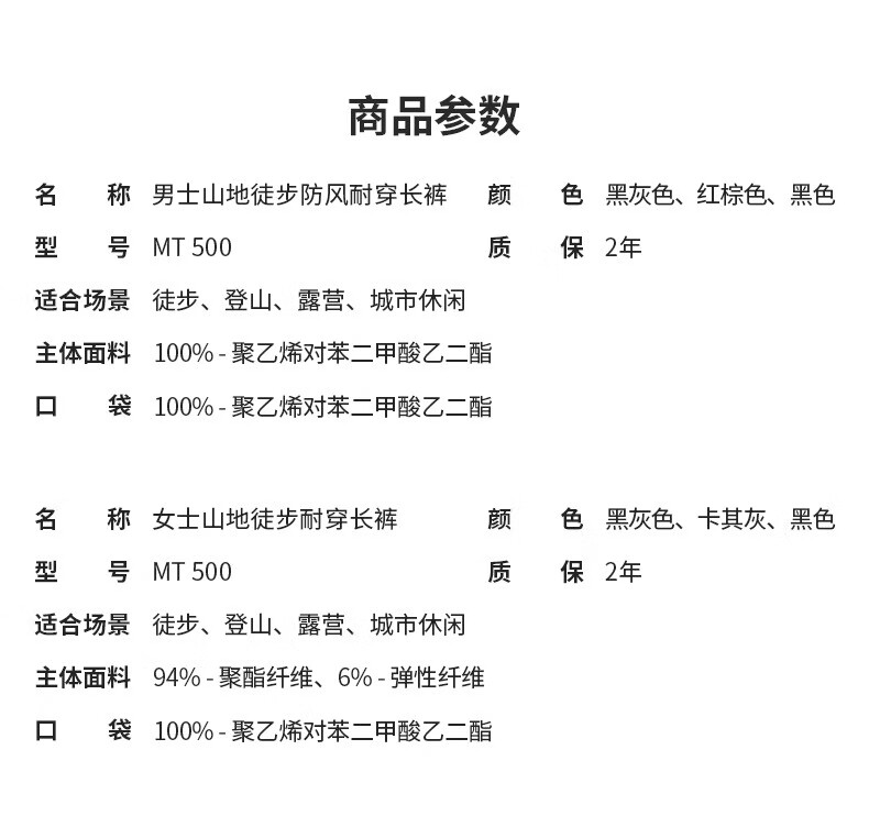 Decathlon MT500 men's mountain hiking windproof and durable trousers-5509488
