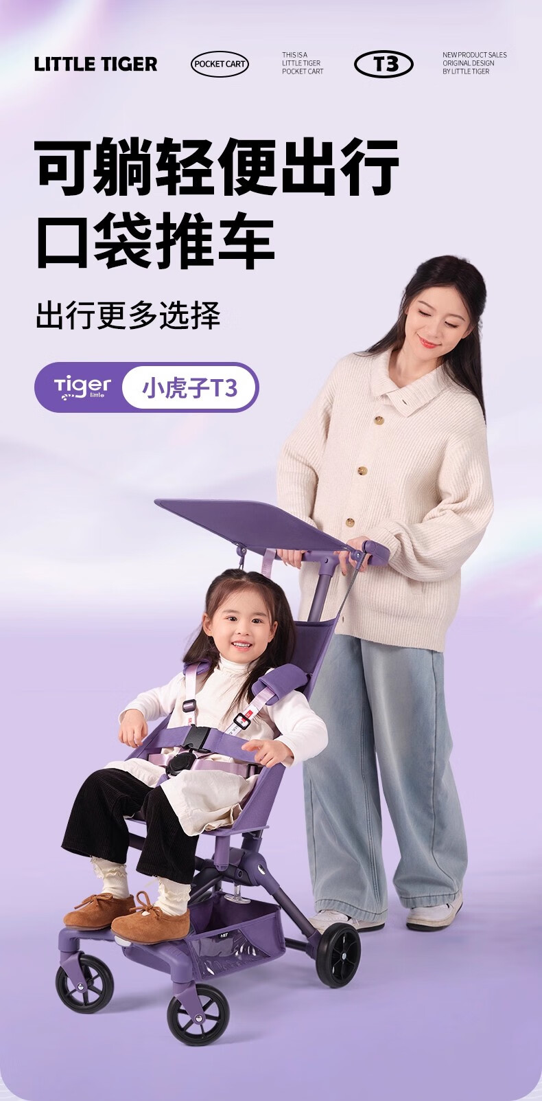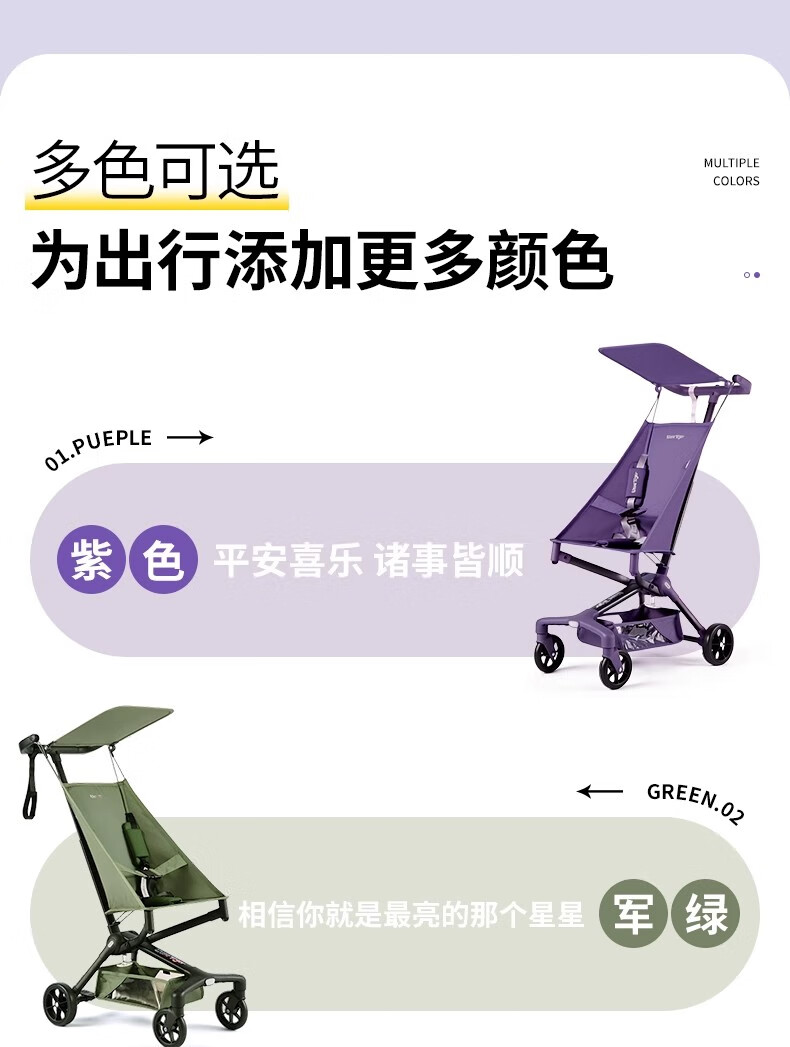 Little Huzi can sit and lie down on the children's station wagon, lightweight and foldable, boarding baby pocket stroller, walking artifact T3 military green