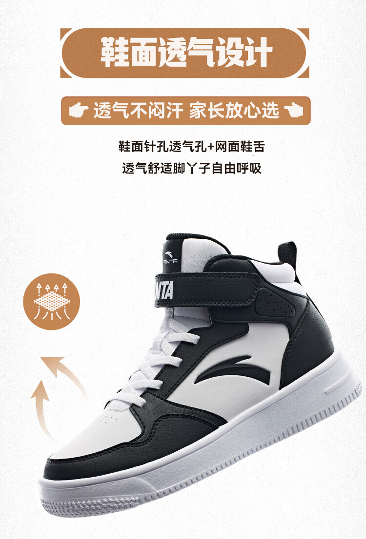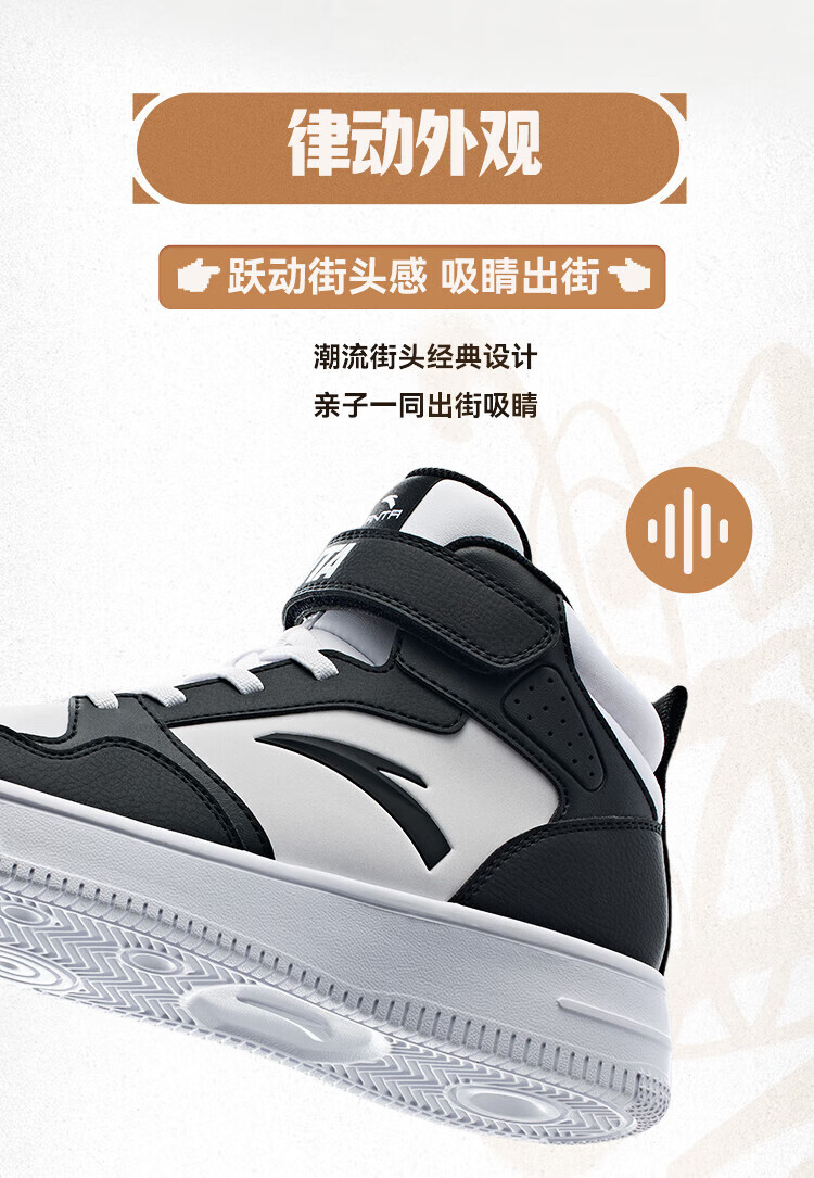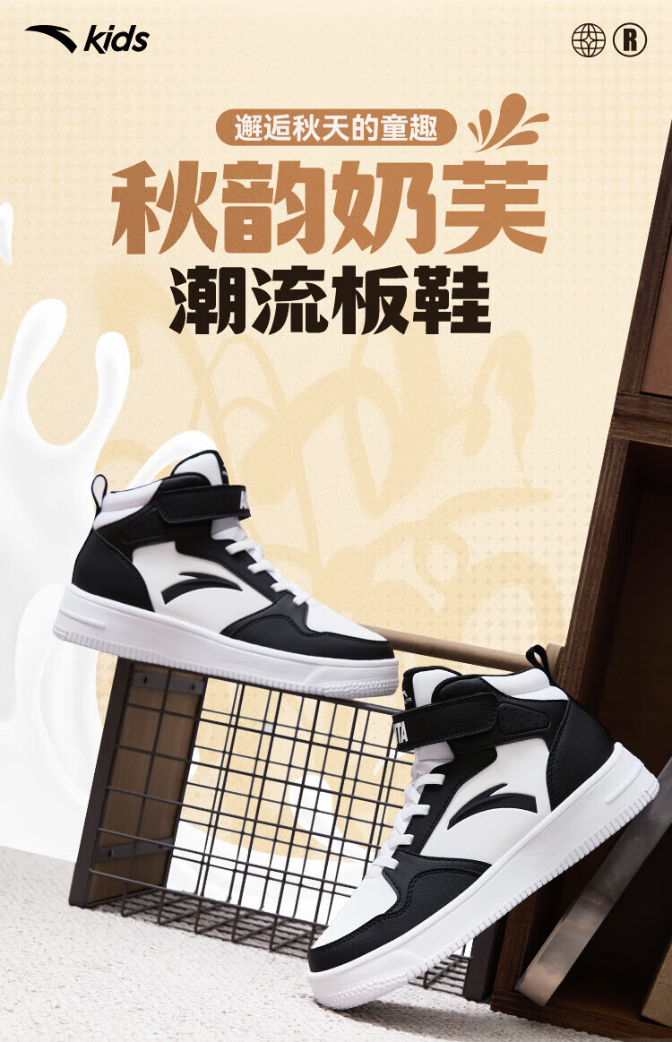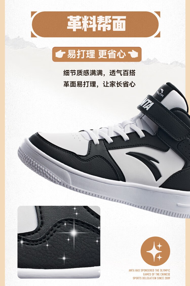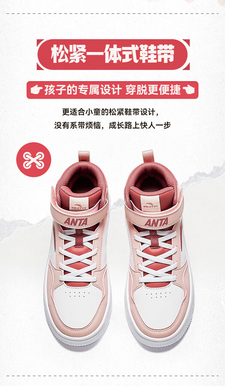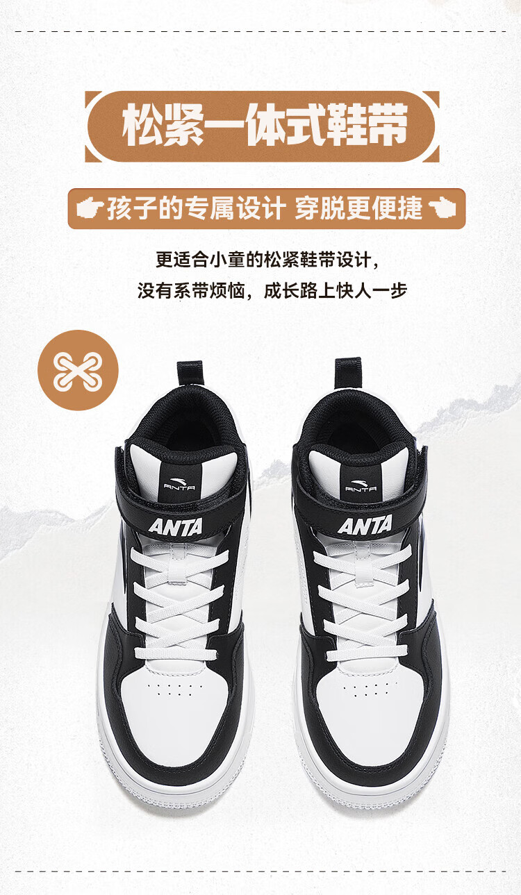 Anta children's sports shoes for boys and girls lifestyle series Velcro high-top white shoes sneakers A12438004