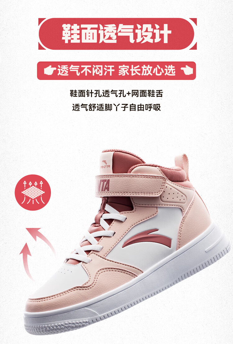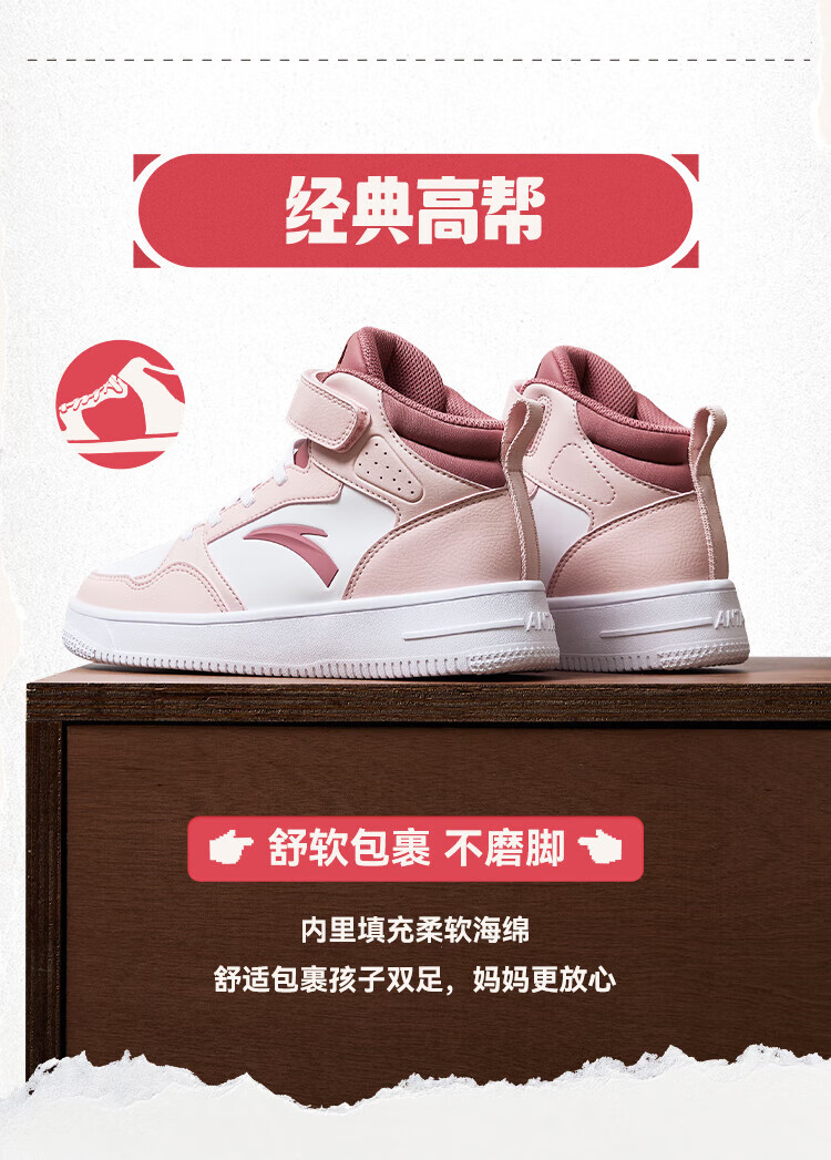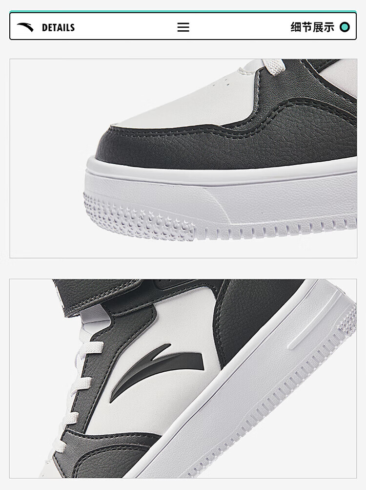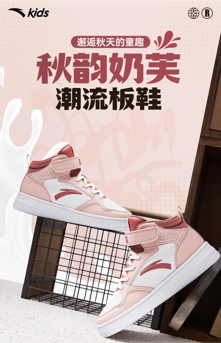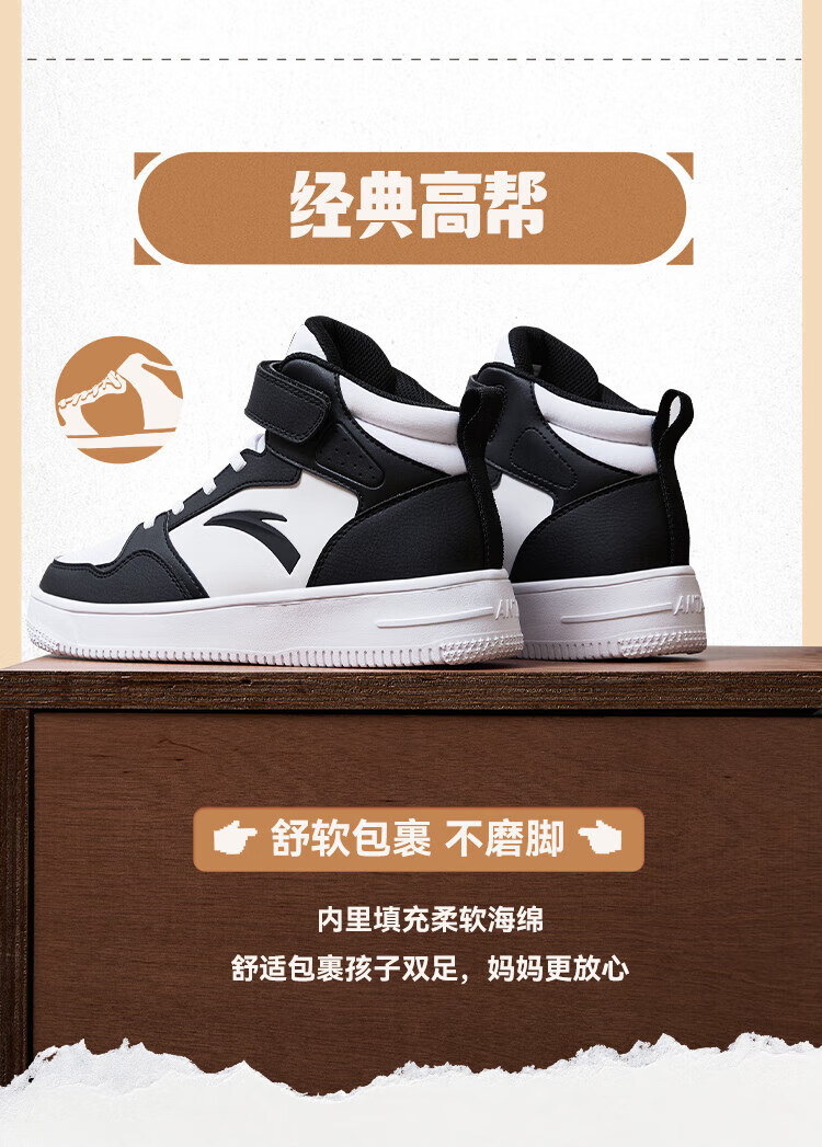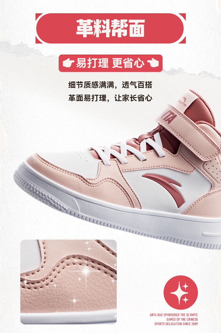 Anta children's sports shoes for boys and girls lifestyle series Velcro high-top white shoes sneakers A12438004