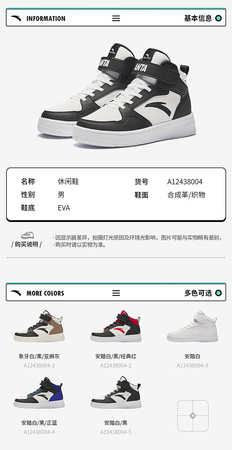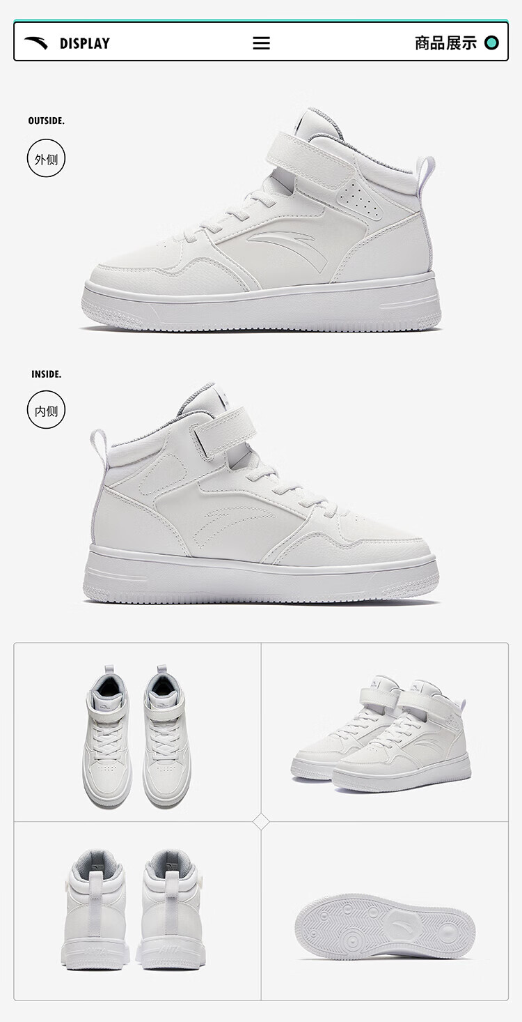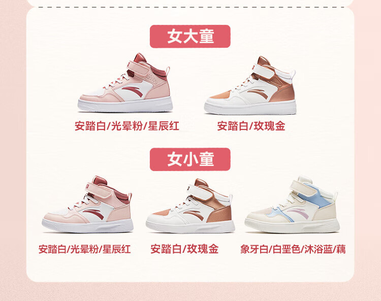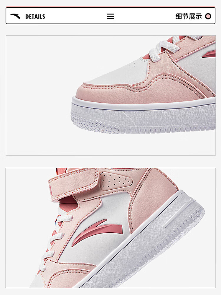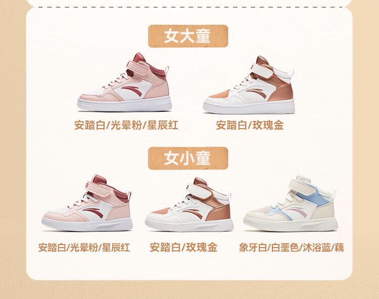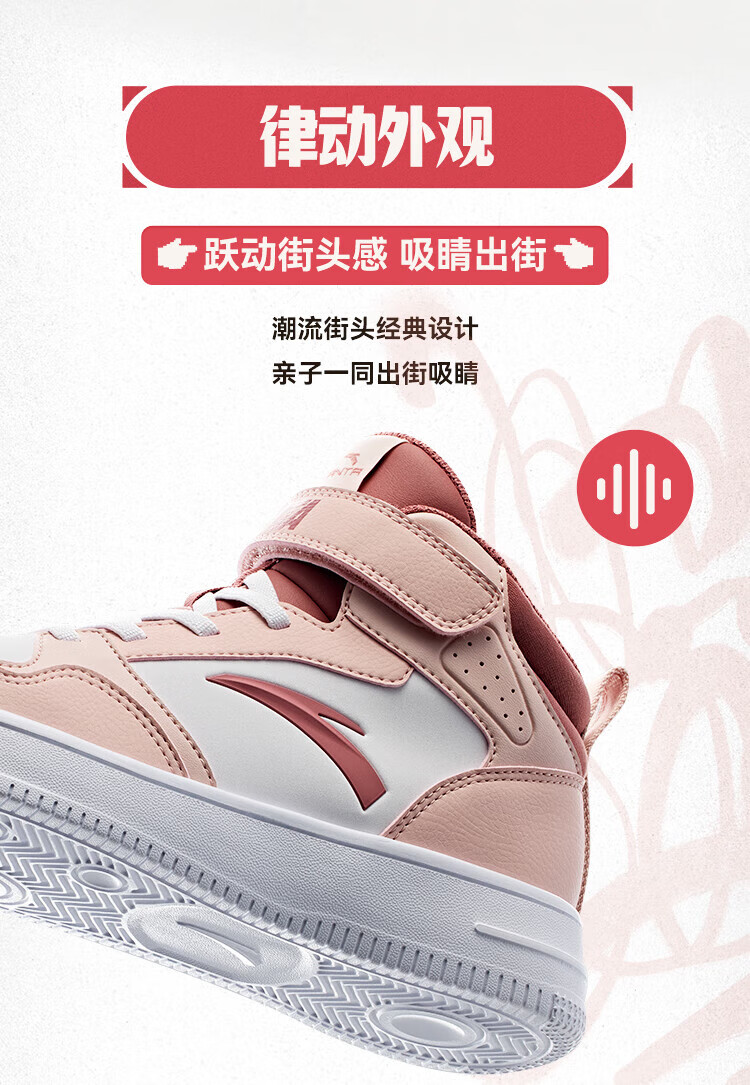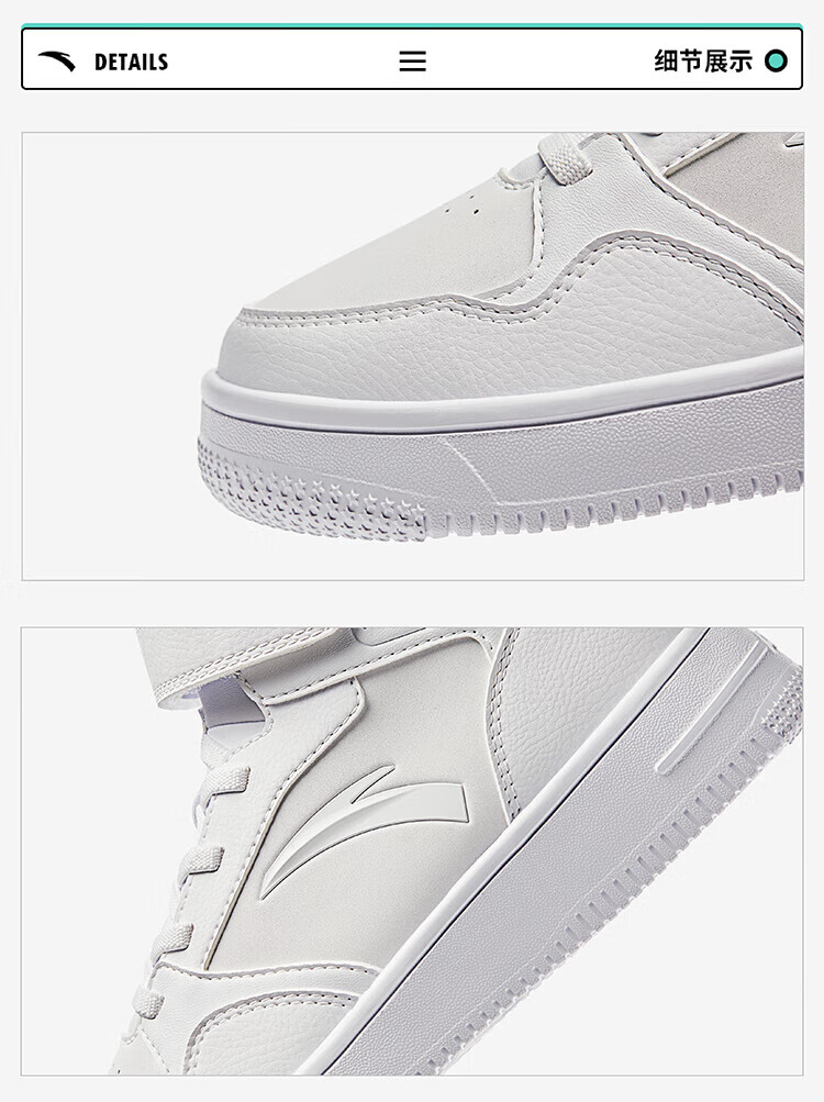 Anta children's sports shoes for boys and girls lifestyle series Velcro high-top white shoes sneakers A12438004