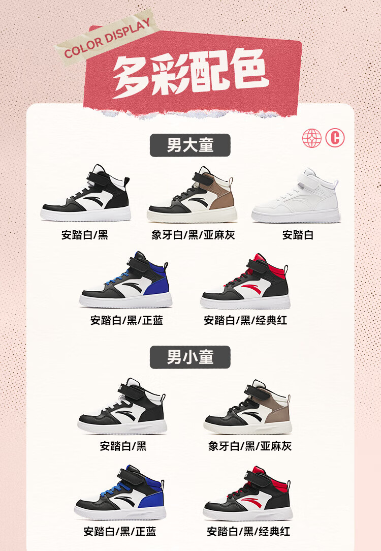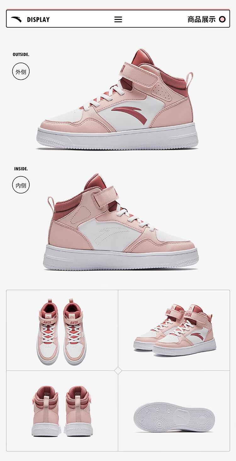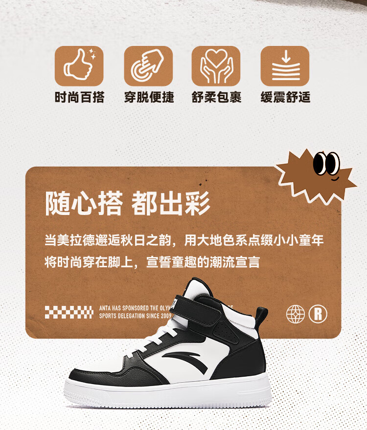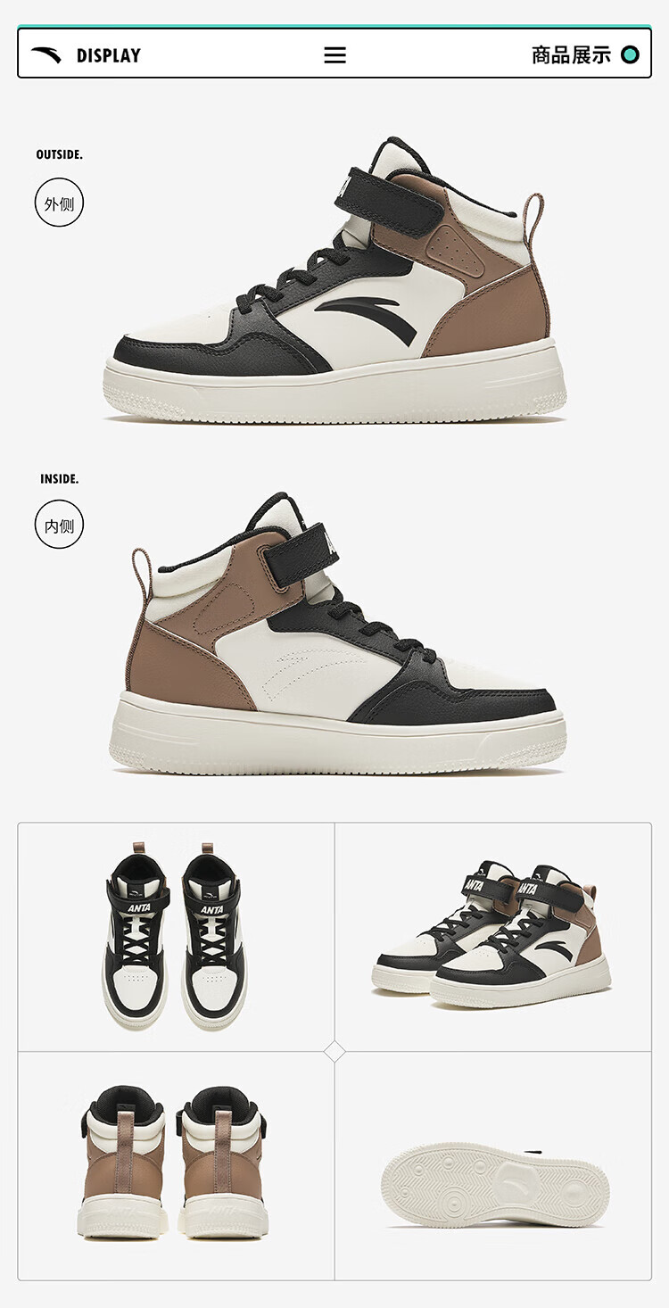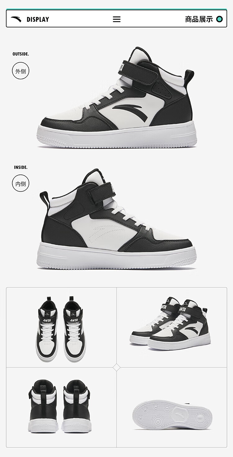Anta children's sports shoes for boys and girls lifestyle series Velcro high-top white shoes sneakers A12438004